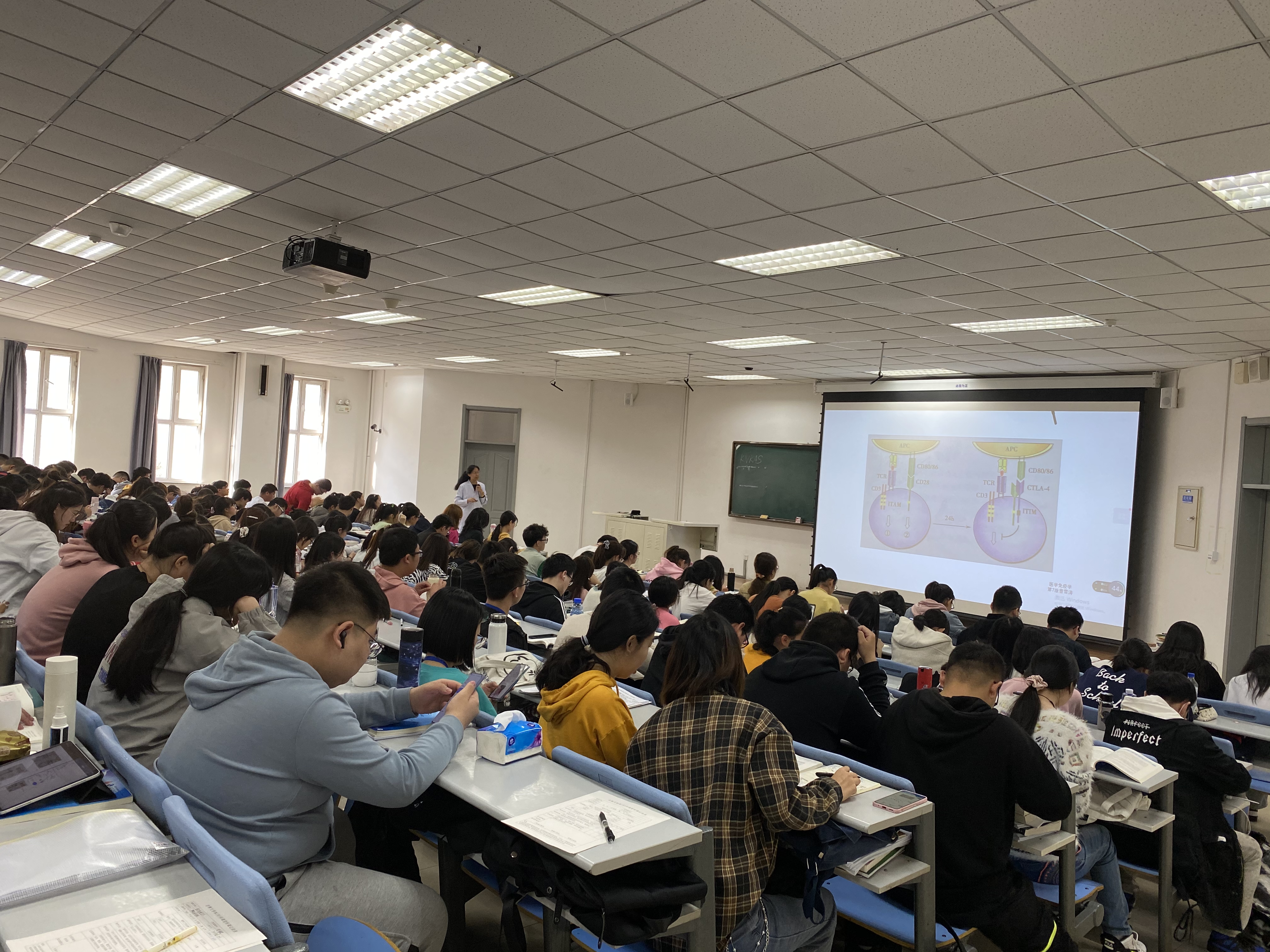 为深入推进我院本科教学课程建设,了解教师教学和学生学习情况,提升本科教学质量,4月12日,基础医学院王放院长、王晓荣书记、辛颖副院长以及教务办全体工作人员深入课堂,开展听课活动。