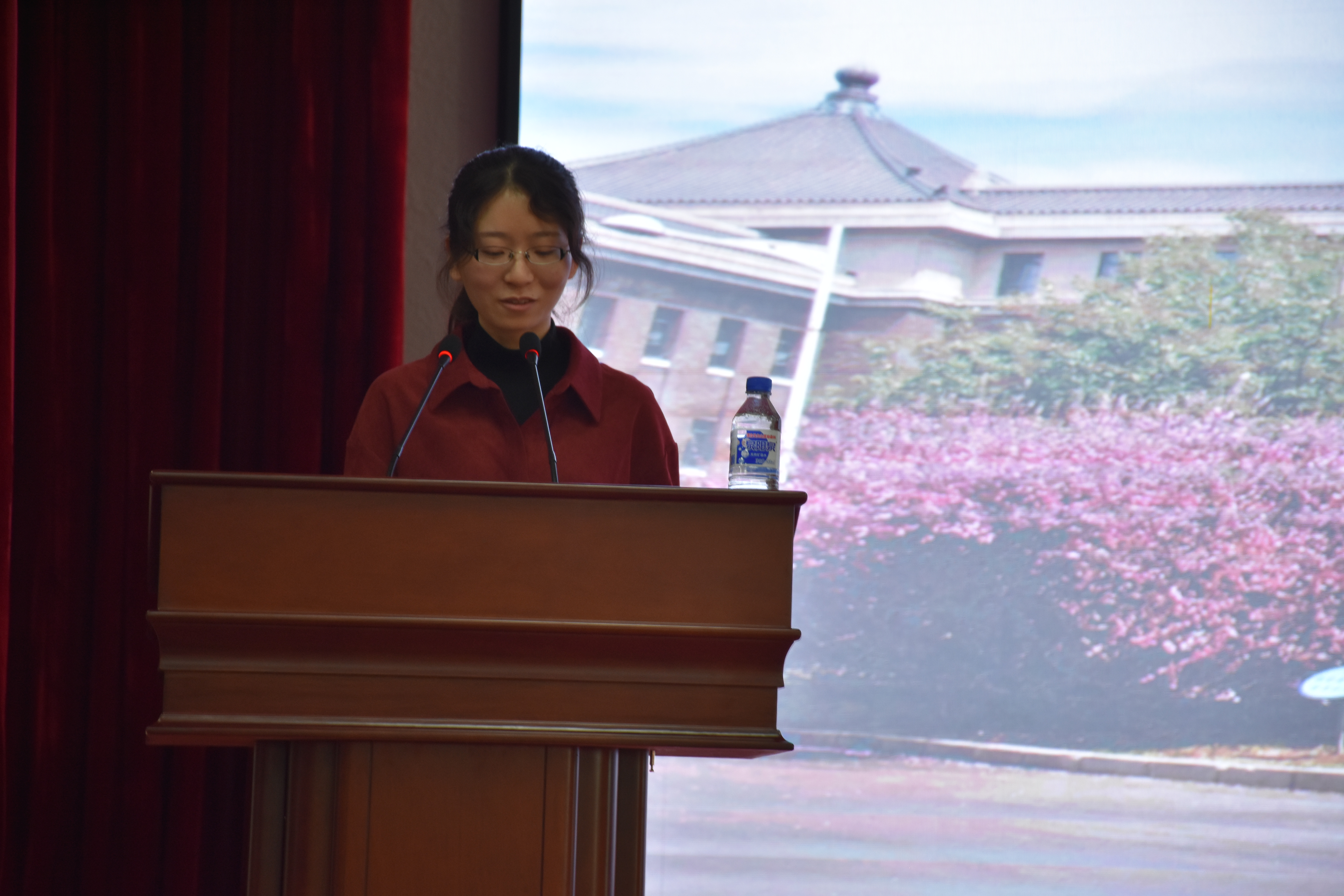 副院长李洪岩宣读2021级新生名单,党委书记王晓荣为2019-2020年度国家奖学金获奖学生代表颁奖。