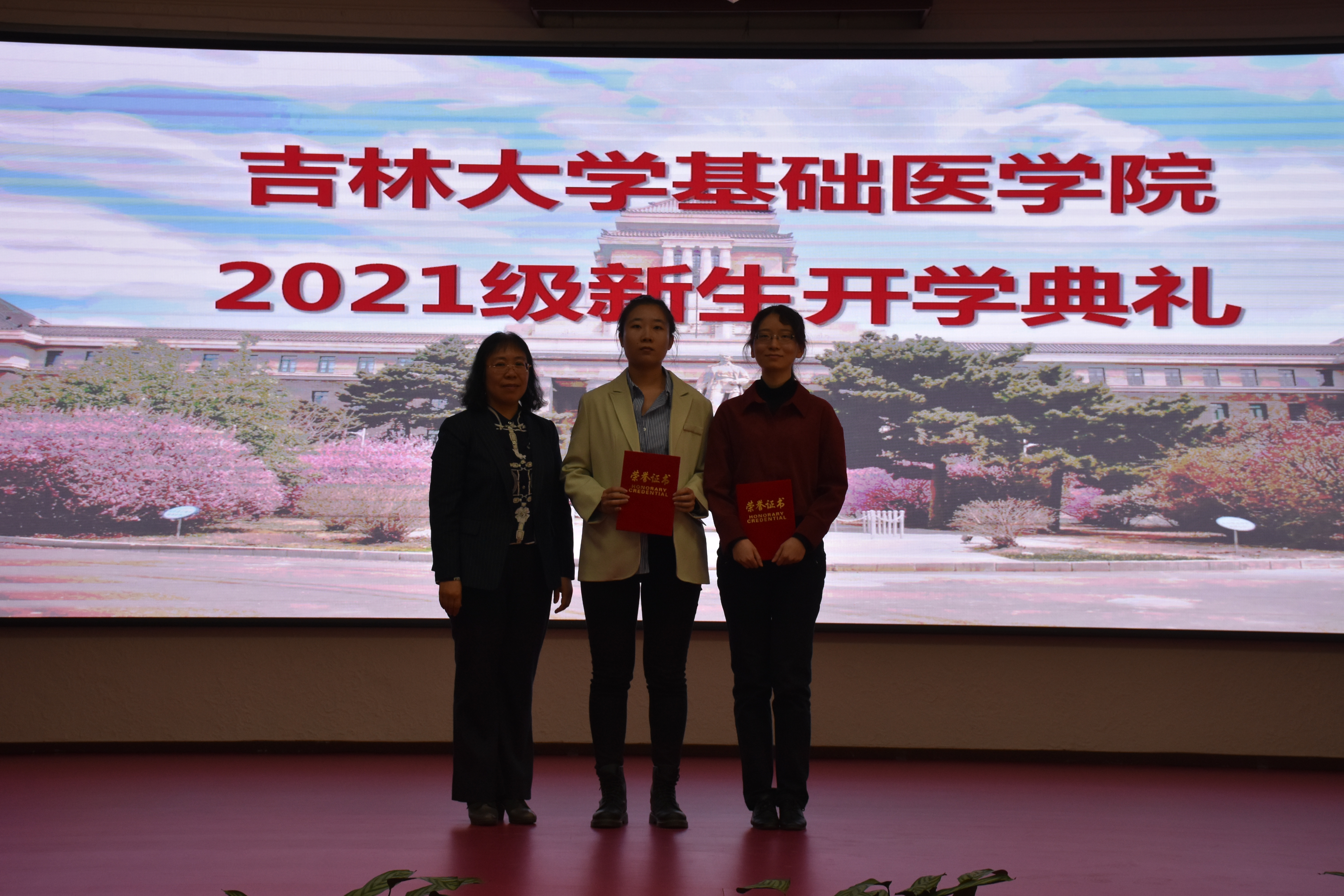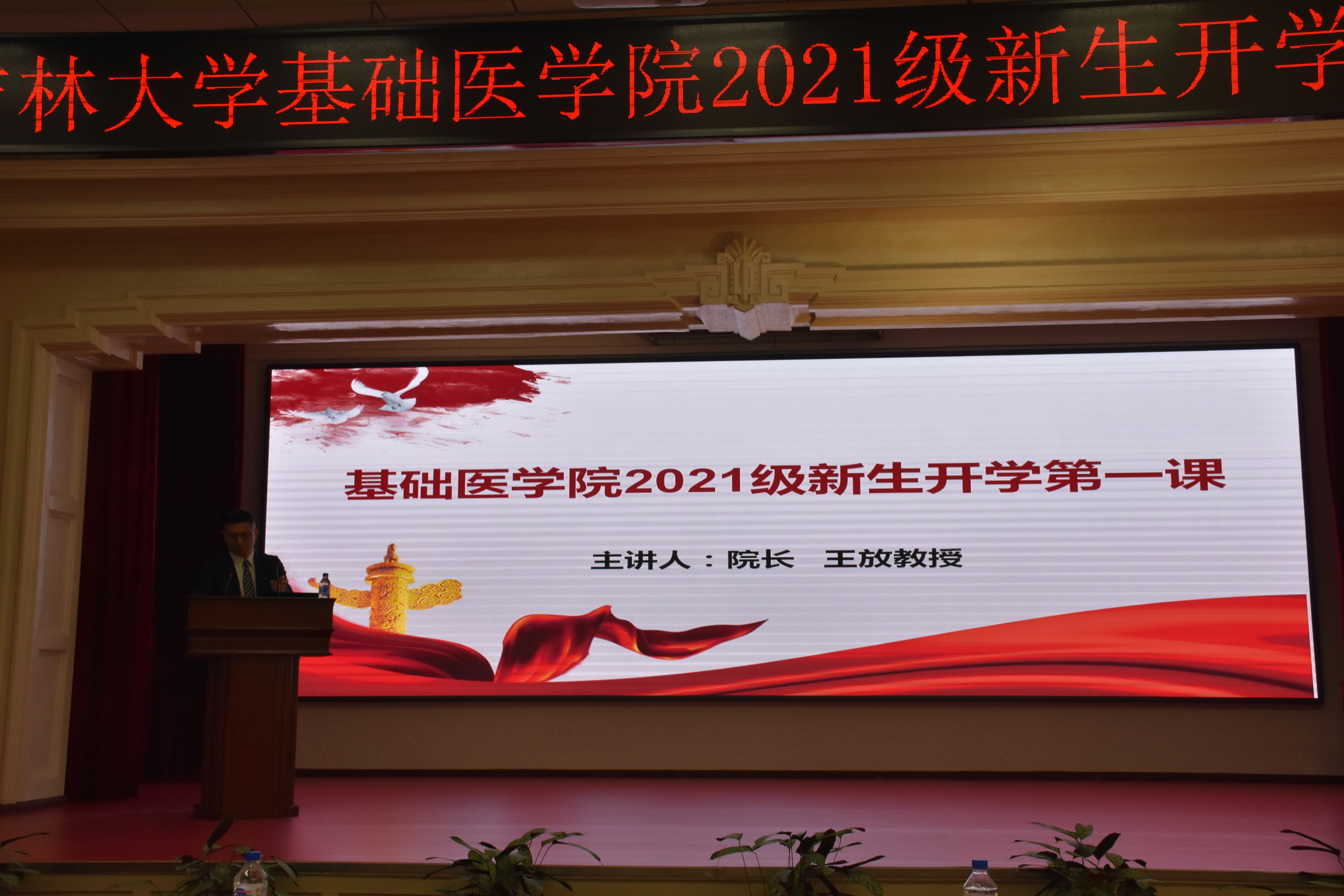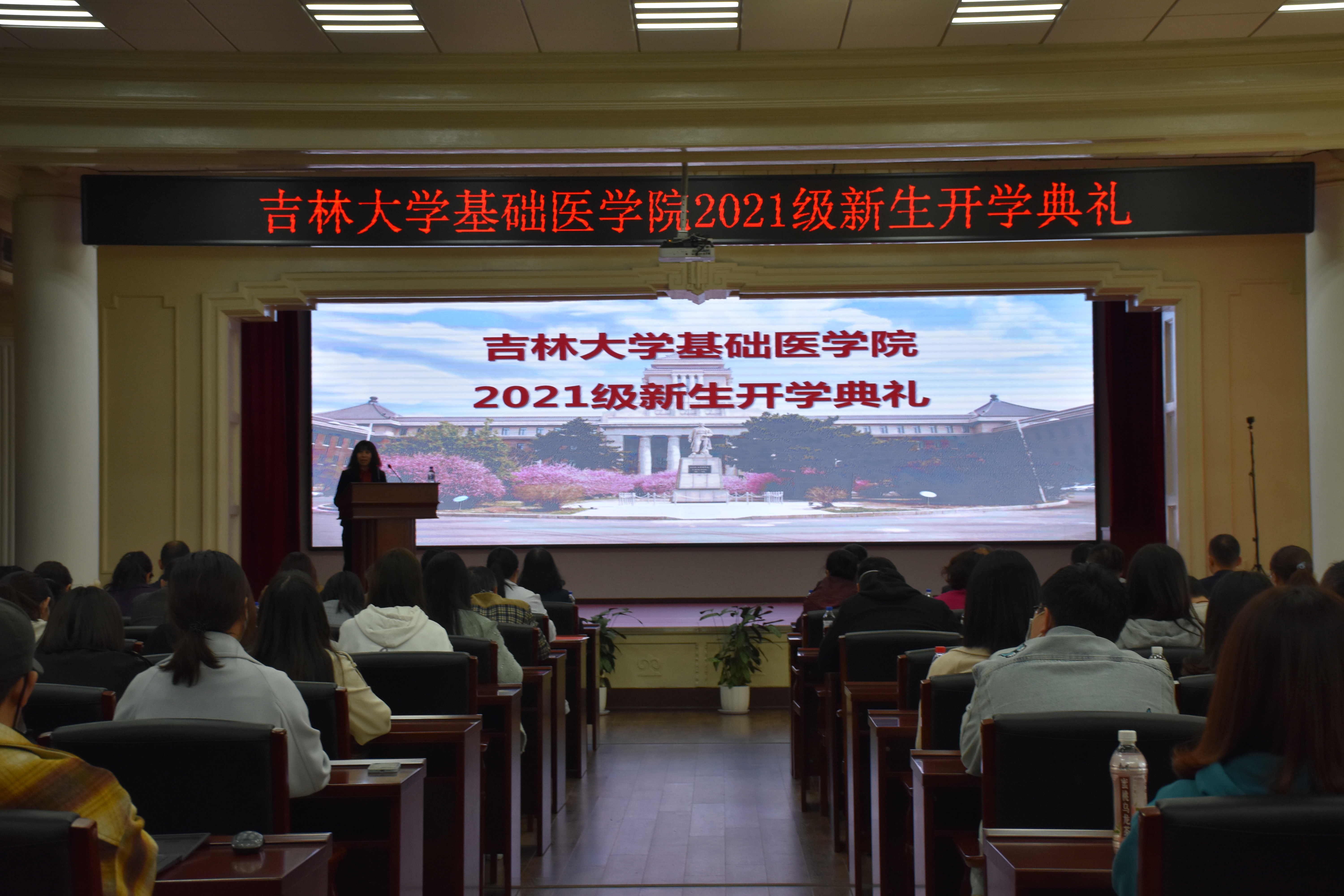 在嘹亮的国歌声中,吉林大学基础医学院2021年新生开学典礼拉开序幕。