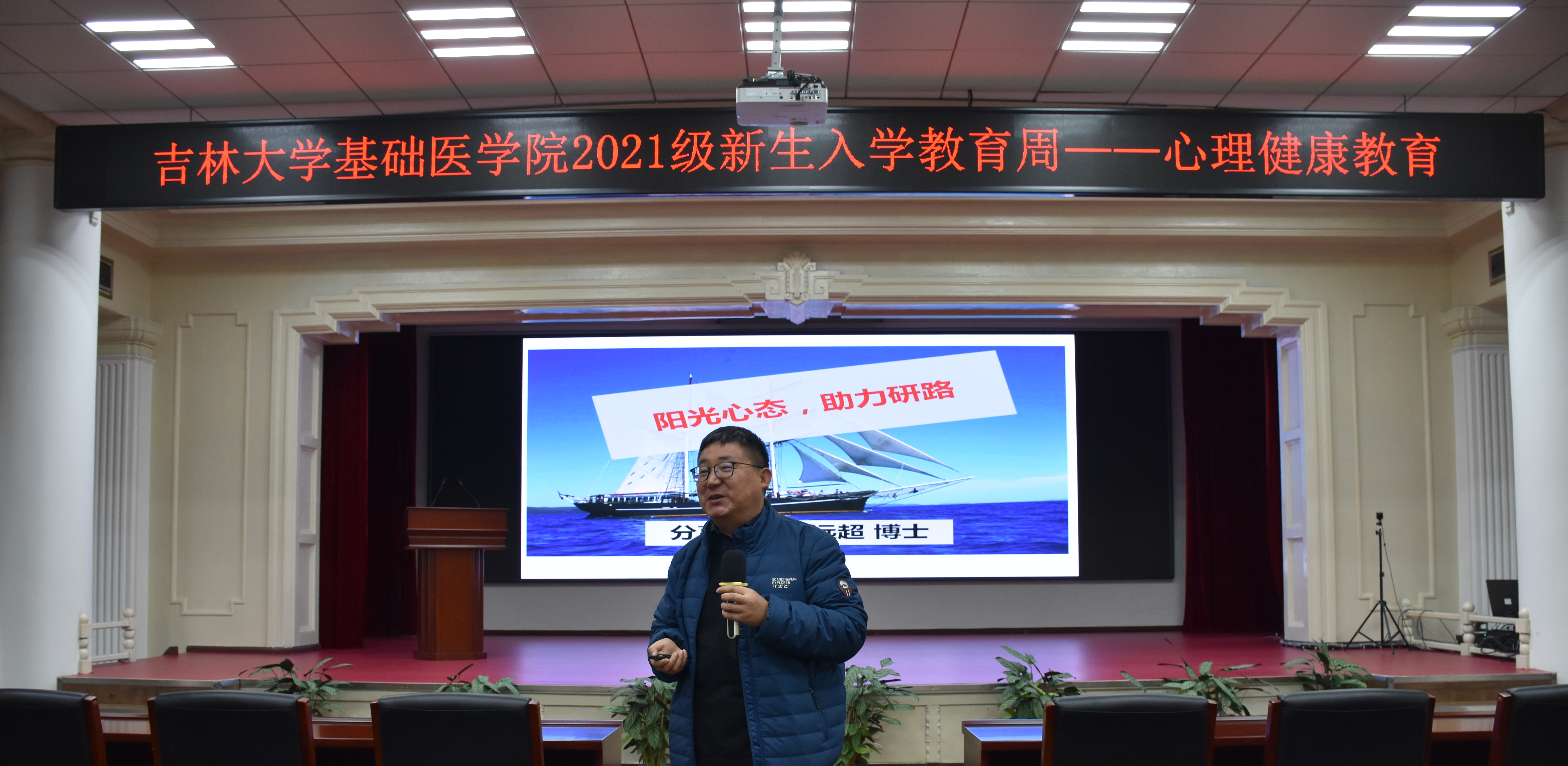 为扎实有序做好新生入学教育工作,提升新生心理健康水平,2021年10月18日下午,在基础医学院报告厅,吉林大学心理健康指导中心导师、公共卫生学院心理学教师胡远超博士受邀为基础医学院全体新生作心理健康讲座。会议由学院综合办公室主任丁红枫主持,学院研究生工作团队及2021级全体新生参加了会议。
