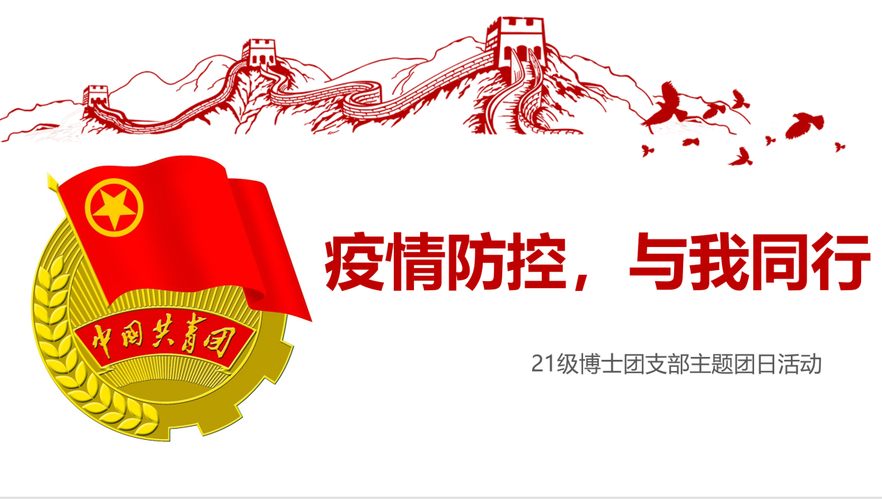 为深入贯彻习近平总书记关于疫情防控的重要讲话精神,贯彻落实学校决策部署,号召全体团员齐心协力、共克时艰。4月15日,基础医学院2021级博士团支部开展了“疫情防控,与我同行”主题团日活动。团委负责人、研究生辅导员孙佳钰以及全体2021级博士团员参加了本次线上团日活动,活动由2021级博士团支书马娇艳主持。