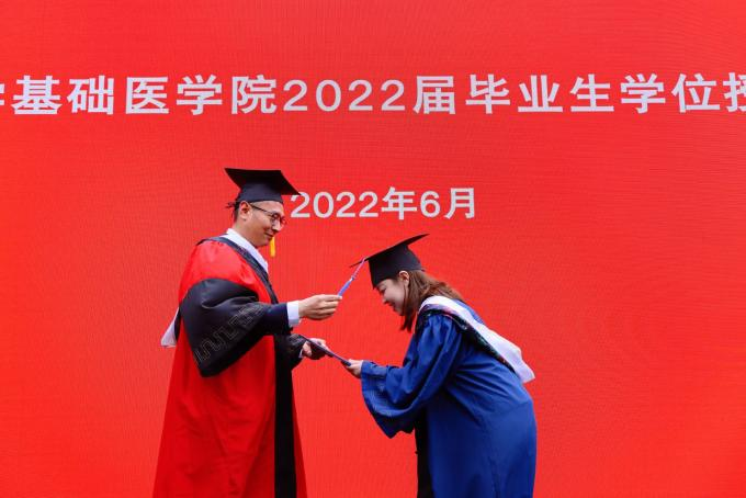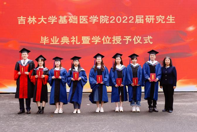 吉林大学基础医学院2022届研究生毕业典礼暨学位授予仪式于2022年6月13日下午在基础医学院以线上线下相结合的方式举行。院长王放、党委书记王晓荣及班子全体成员、各学系教研室主任、党支部书记、研究生指导教师、研究生办公室老师和全体毕业研究生参加。毕业典礼由副书记曹国丽主持。