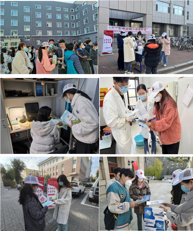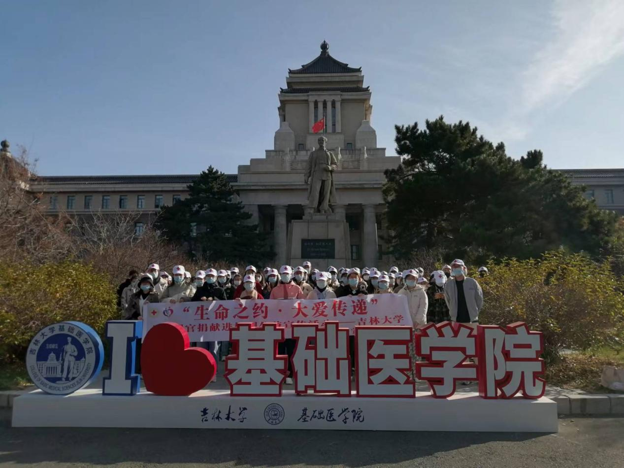辉煌成就鼓舞人心,宏伟蓝图催人奋进。习近平总书记鼓励立志做有理想、敢担当、能吃苦、肯奋斗的新时代好青年,为了全力践行习近平总书记二十大重要指示精神,进一步弘扬“人道、博爱、奉献”的红十字精神,传播“自愿无偿、高尚利他”的遗体器官捐献理念。2022年10月29日、30日,吉林大学基础医学院教工第四党支部、研究生党支部和本科生党支部联合吉林省红十字会,在基础医学院刘海岩副院长、人体解剖学系赵亚明老师、学生办公室主任李东洋、团委负责人孙佳钰的带领下,由吉林省遗体捐献志愿者服务队、基础之光志愿者协会及基础医学院本科生、研究生共140余人组成的团队开展了“生命之约·大爱传递”人体器官捐献宣传活动。此次活动分别在吉林大学前卫南区、新民校区、朝阳校区及前卫北区等校区开展线下及线上宣传活动,累计普及千余人次。