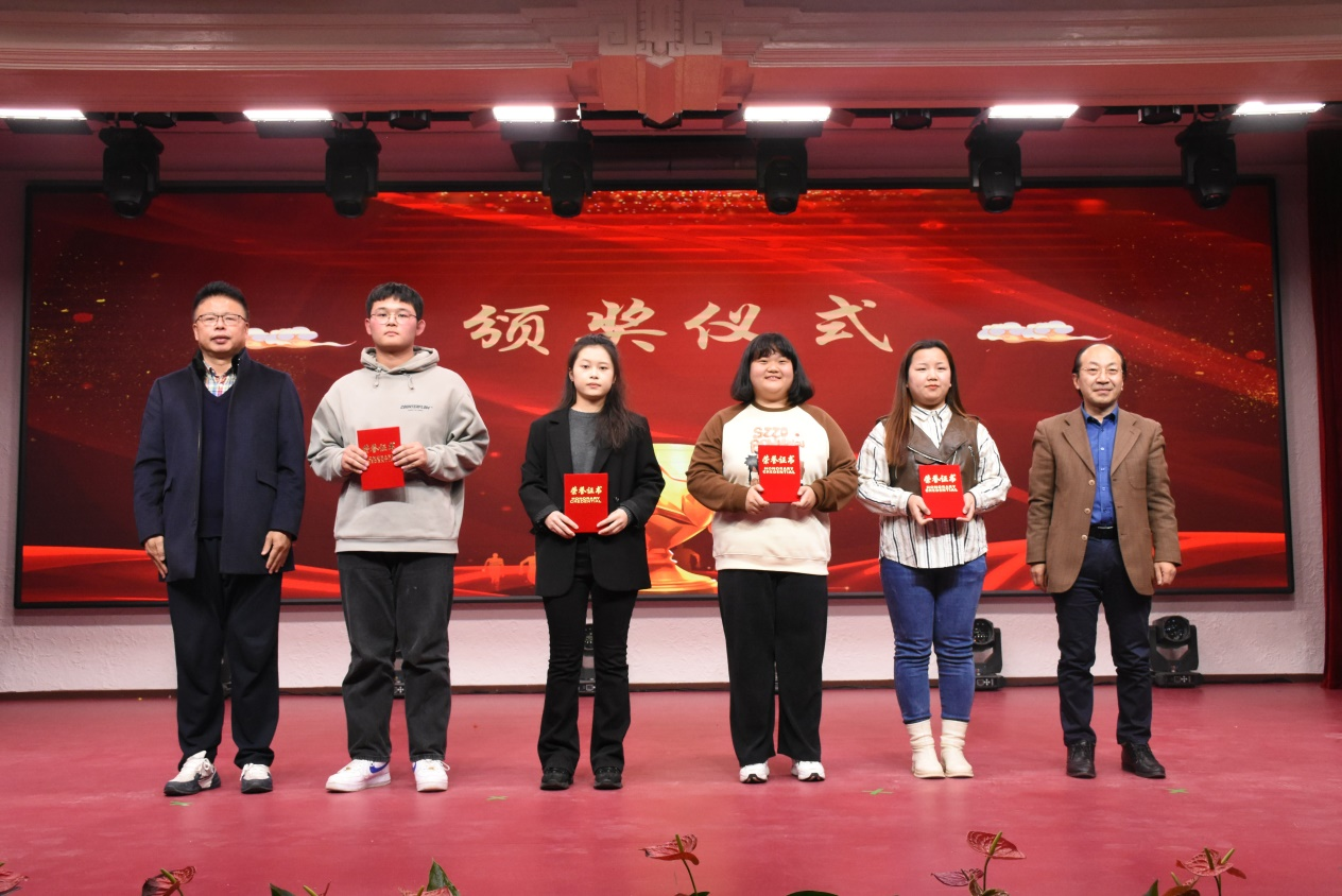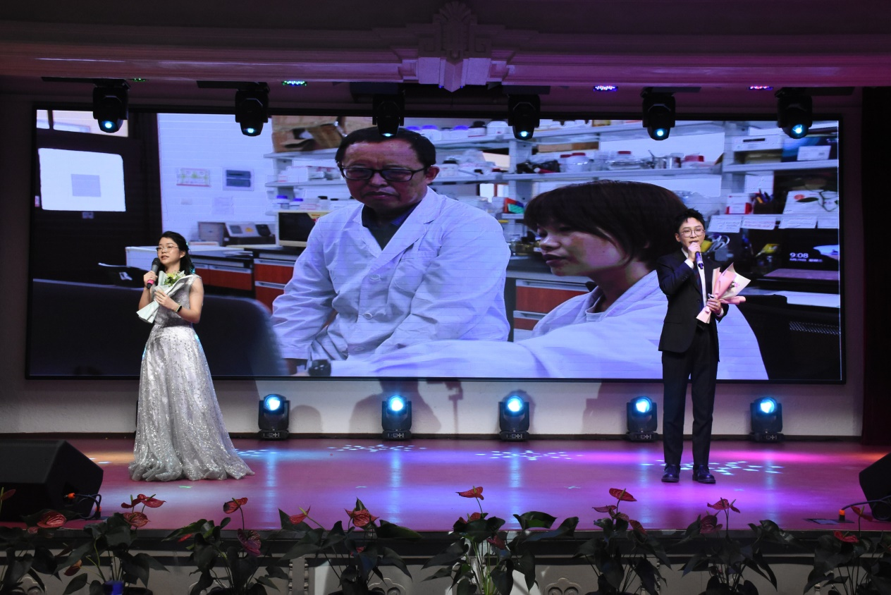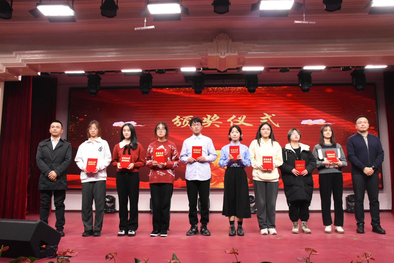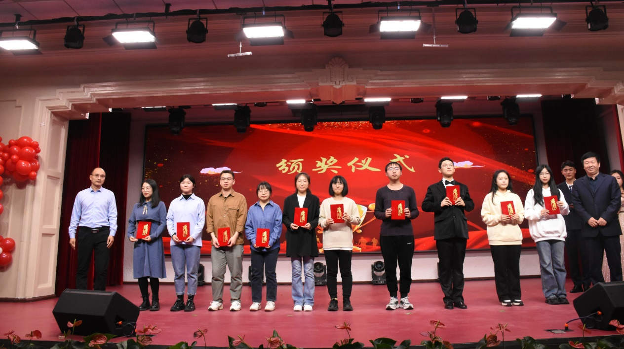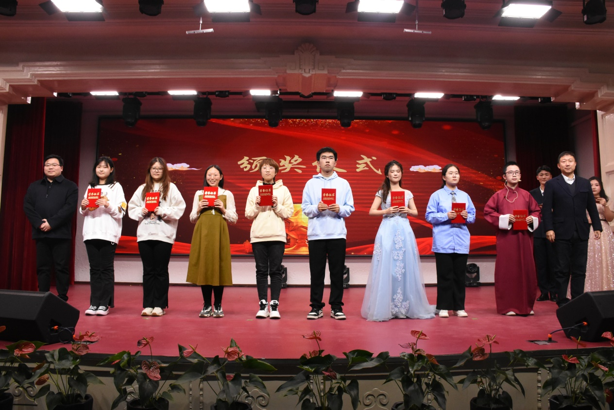 在晚会颁奖环节,吉林大学研究生工作部部长赵玥、基础医学院院长王放为2023年度研究生国家奖学金、求实奖学金获得者颁发荣誉证书。