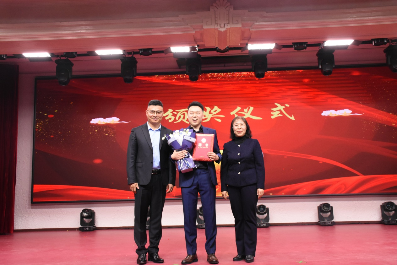 基础医学院苷大励学金捐赠人李平亚、基础医学院副院长陈龙为2023年度苷大励学金获得者颁发证书。