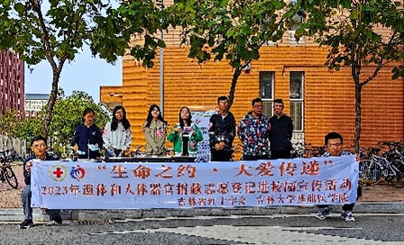 为进一步弘扬“人道、博爱、奉献”精神,传播“自愿无偿、高尚利他”的遗体和人体器官捐献理念,提高公众人体器官捐献的认知度和支持度,2023年9月至12月,吉林大学基础医学院联合吉林省红十字会举办了“人道关爱•红色传承”——吉林省遗体和人体器官捐献系列宣传活动。在人体解剖学系教师的带领下,吉林省遗体捐献志愿者服务队、基础医学之光志愿者协会共计60余名志愿者先后在吉林大学、朝阳区永昌社区、惠民社区、各地铁站等地点开展线下宣传活动。