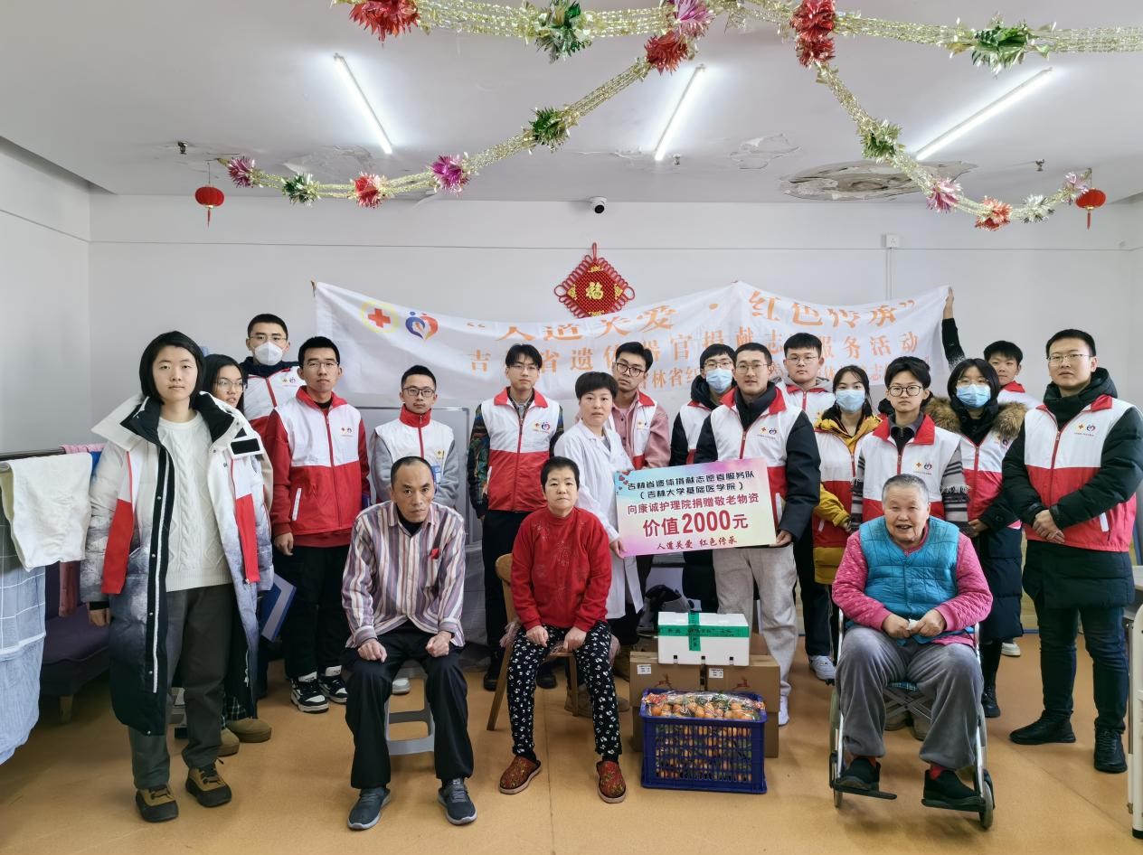 为进一步弘扬“人道、博爱、奉献”的红十字精神,传播“自愿无偿·高尚利他”的人体器官捐献理念,提高公众对器官捐献的认知度和支持度,12月23日,吉林省遗体捐献志愿者服务队联合吉林大学基础医学院“基础医学之光”志愿者协会,在人体解剖学系赵亚明老师、鞠爱鹏老师的带领下在康城护理院开展“人道关爱•红色传承”遗体器官捐献志愿宣传活动。