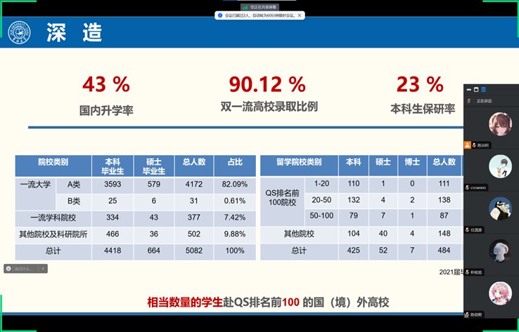 会议以线上形式进行。首先,会议重点强调了招生宣传的目的和意义在于提高吉林大学的知名度、提升参与成员的实践动手能力及团队合作意识,以提高大家对返回母校宣传吉林大学的积极性与参与度,随后对宣讲主题、参会人员、时间安排、预期效果等多个方面进行协调和安排。会议提倡实践出真知,鼓励大家以不同的宣讲形式呈现多样有效的宣讲成果,与此同时在社会实践中积累社会经验、提升沟通能力、激发实践潜力。