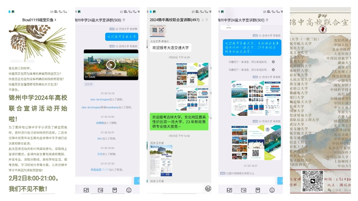 由朴炫旭等人组成的锦州中学团队,搜集了吉林大学官方发布的各类政策,把学生家长最关心的人才培养、转专业、考研就业等单独划分板块讲解,将吉林大学文创产品作为抽奖礼品吸引更多人关注吉林大学官方招生咨询群,同时学习借鉴其他高校优秀招生宣传案例,在多个平台进行宣传,并引导学生家长从官方途径正确详细了解吉林大学。