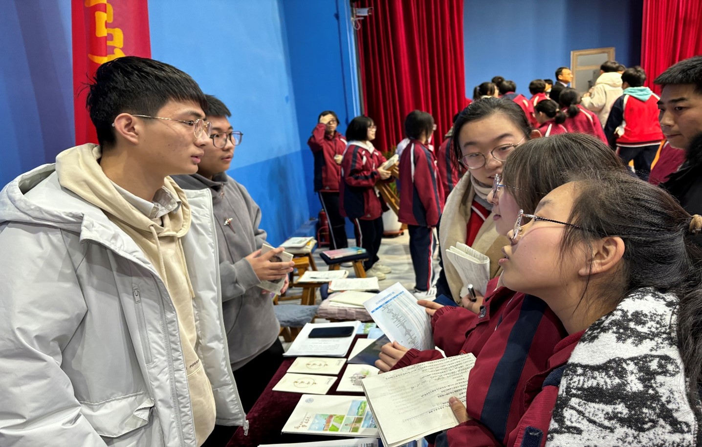 2024年1月21日上午,由来自基础医学院生物医学科学专业的陈治利和汽车工程学院车辆工程专业的刘家圻组成的吉林大学益众中学宣讲队,来到母校河北省遵化益众中学招生宣讲。经过前期沟通,在遵化益众中学的大力支持下,在学校大礼堂开展招生宣讲活动。在大礼堂内,有由本校高三精英班组成的1000余名同学,更另有其余3000余名同学在教室观看直播。前期经过多次协商,做好充分准备。宣讲团队详细介绍了吉林大学的校园文化、重点专业和人才培养方面,受到了在场同学的热烈欢迎。介绍完吉林大学后,宣讲团队与在场互动交流,活动结束,许多同学还不舍离开。