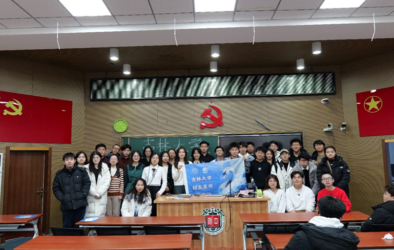 2024年2月1日晚上19:30,由我院徐卓研、任清源、朱锦彤、郭悦婷等人组成的吉林大学“2024年寒假招生宣传母校行”长春吉大附中实验学校宣讲团,通过网络直播的方式,用实际行动向母校同学宣传吉大风采、弘扬吉大精神、展现吉大力量。通过本次宣讲,同学们不仅了解到了吉林大学的文化底蕴,还深刻领悟到了吉林大学的综合实力。相信吉大附中的同学们一定会为了他们的大学梦更加奋勇拼搏,顺利圆梦!