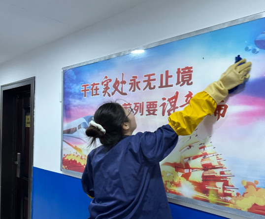 志愿服务期间,李润源同学协助社区工作人员清扫了社区范围内的城市道路、垃圾桶、社区宣传展板,体会到了社区基层工作的辛劳与不易。
