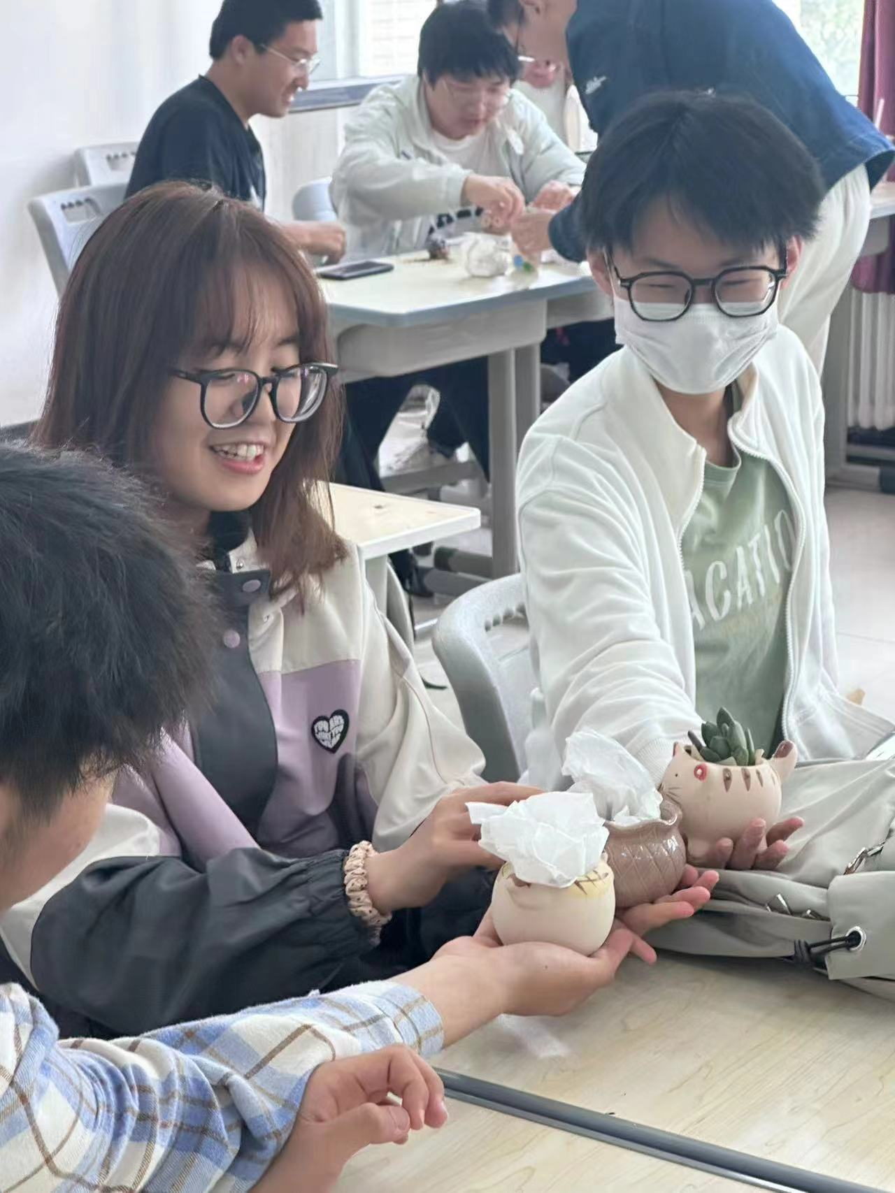 活动于5月21日-5月27日,在前卫南区和新民校区两校区共同举办,全面覆盖基础医学院的每一位同学。活动分为三个环节,在第一个环节心情笑脸展览板活动中,同学们纷纷画出自己或身边人最真实、最具感染力的笑脸照片,这些笑脸照片将以艺术化的方式布置在展览板上,形成一幅幅生动活泼且温暖人心的画面。同时,这也是一种无声的情感交流,让同学们在欣赏他人笑脸的过程中感受到来自同龄人的力量和支持,进一步强化了同学们的凝聚力和归属感。接着进入到绿植领养计划环节,同学们在实际操作中享受到园艺的乐趣,同时也孕育出对自然的尊重和爱护之情。最后,活动进入到鼓起勇气,把星星打包带走这一环节,同学们制作星星气球,并用灯带加以装饰。每颗星星都承载着个人的独特故事和情感寄托,当它们被同学们高高举起时,形成一片璀璨夺目的“星辰大海”,以此鼓励彼此勇敢展现个性,同时也教会他们在面对挑战和困难时,要像抬头仰望星空一样,保持坚韧不屈的精神面貌。