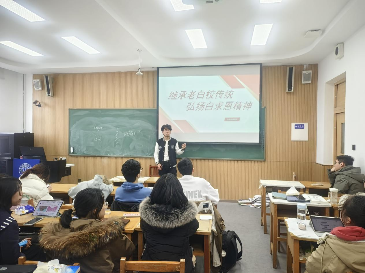 在寒假期间,吉林大学基础医学院“继承老白校传统,弘扬白求恩精神”实践团以“八秩芳华·寻梦启航”为主题,深入挖掘和传承吉林大学的历史文化,弘扬白求恩精神和北上精神,取得了丰硕的实践成果。为总结2025年寒假社会实践活动的成果,进一步弘扬白求恩精神和北上精神,基础医学院于2025年3月10日召开了“继承老白校传统,弘扬白求恩精神”寒假社会实践活动总结讨论会。此次会议旨在回顾实践团在寒假期间的工作成果,分享实践经验,并为未来的社会实践活动提供参考和指导。