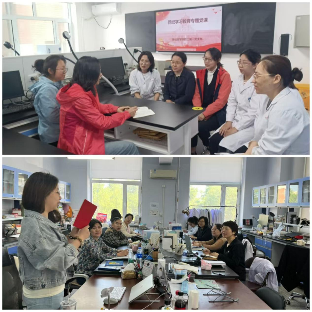 2024年5月23日上午,吉林大学基础医学院教工第一党支部组织开展党纪教育专题党课,分组传达学习《中国共产党纪律处分条例》,本次课程由支部书记刘芬同志主持。