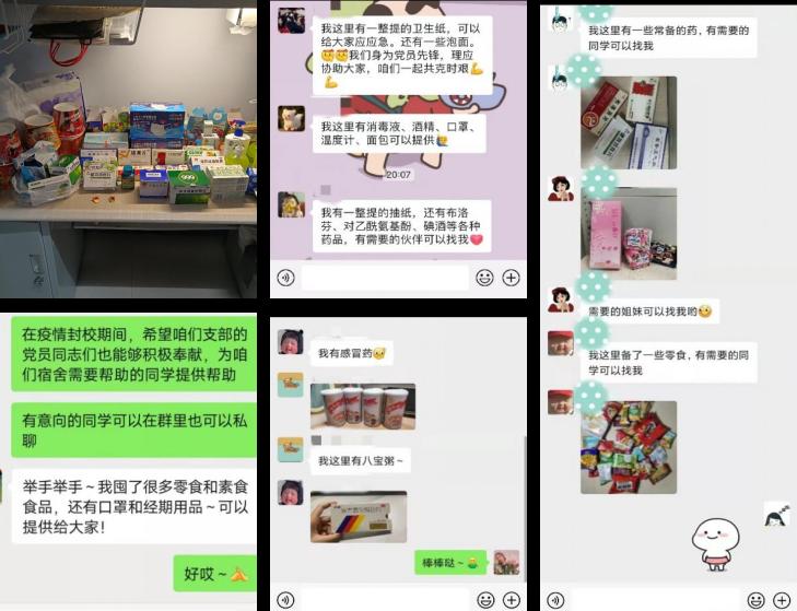 为充分发挥在疫情防控工作期间基层党组织战斗堡垒作用和共产党员先锋模范作用,我院研究生辅导员孙佳钰老师被学校党委任命为前卫北区四公寓师生临时党支部书记和楼长,负责学院一百余名学生的教育管理和服务保障工作以及四公寓楼内四百余名学生的思想政治工作。3月17日下午,临时党支部刚一成立,孙佳钰老师立刻带领支部党员同志召开了第一次线上支部会,会议讨论的第一件事就是如何充分发挥党员的先锋模范带头作用,团结一心,共克时艰。在分配和落实好宿舍楼内日常疫情防控工作之外,支部成员们积极讨论在封闭校园管理期间还能为其他同学做点什么,如何更好地解决同学们的生活所需。支部决定在四公寓楼的611室设立“爱心自助屋”,让同学们可以足不出户地共享生活必需品,并安排专人定期对自助屋内进行消毒。支部的二十余名党员首当其冲,积极响应,把自己寝室里的食物、常见药品、生活物品等放到这里。爱心自助屋内现有常用药品十余盒,各类食品二十余种,防疫物资包括口罩、消毒湿巾、洗手液等十余件。很多同学都在自助屋内找到了自己急需的物品,还有很多同学没有选择去拿,而是选择奉献爱心,把自己的物品放了上去,让这里成为了一个接受爱心、奉献爱心、传递爱心的中转站。
