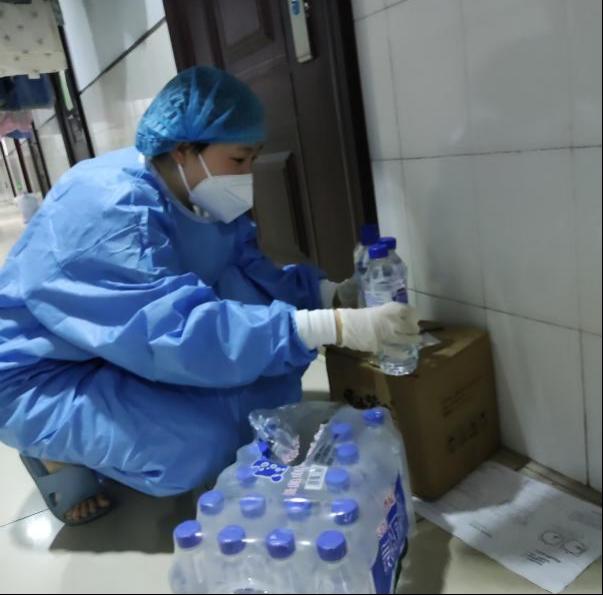 作为学生第一党支部书记及新民七公寓负责人,此时此刻我不想说我自己,因为每一位负责人都肩负着一样的责任,我想说:有这样一群女孩儿,平时总是嘻嘻哈哈;有这样一群女孩儿,平时是爸爸妈妈的宝贝,但在疫情钟声敲响时,一个个瘦弱的身躯,一个个小小的身影,争先恐后的出现在七公寓的楼道、走廊。40多箱水,277份餐食,277份试剂盒,大家有条不紊,按序分发,忙完经常满头大汗。3月的疫情让女孩儿们露出了素颜,同时也露出了最美的笑容。一起奋斗的日子,我们更懂得了团结,更懂得了珍惜,更懂得了惺惺相惜,我不觉得累,因为你们值得!