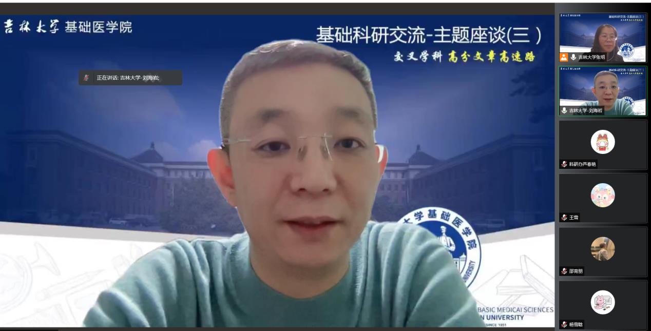 学科交叉是学科新的生长点和科学研究前沿。为了进一步推动学科交叉融合,促进跨学科领域研究,5月5日晚,基础医学院举办了以“交叉学科——高分文章高速路”为主题的线上座谈,座谈由学院副院长刘海岩教授主持,学院100余名师生参加了本次座谈。