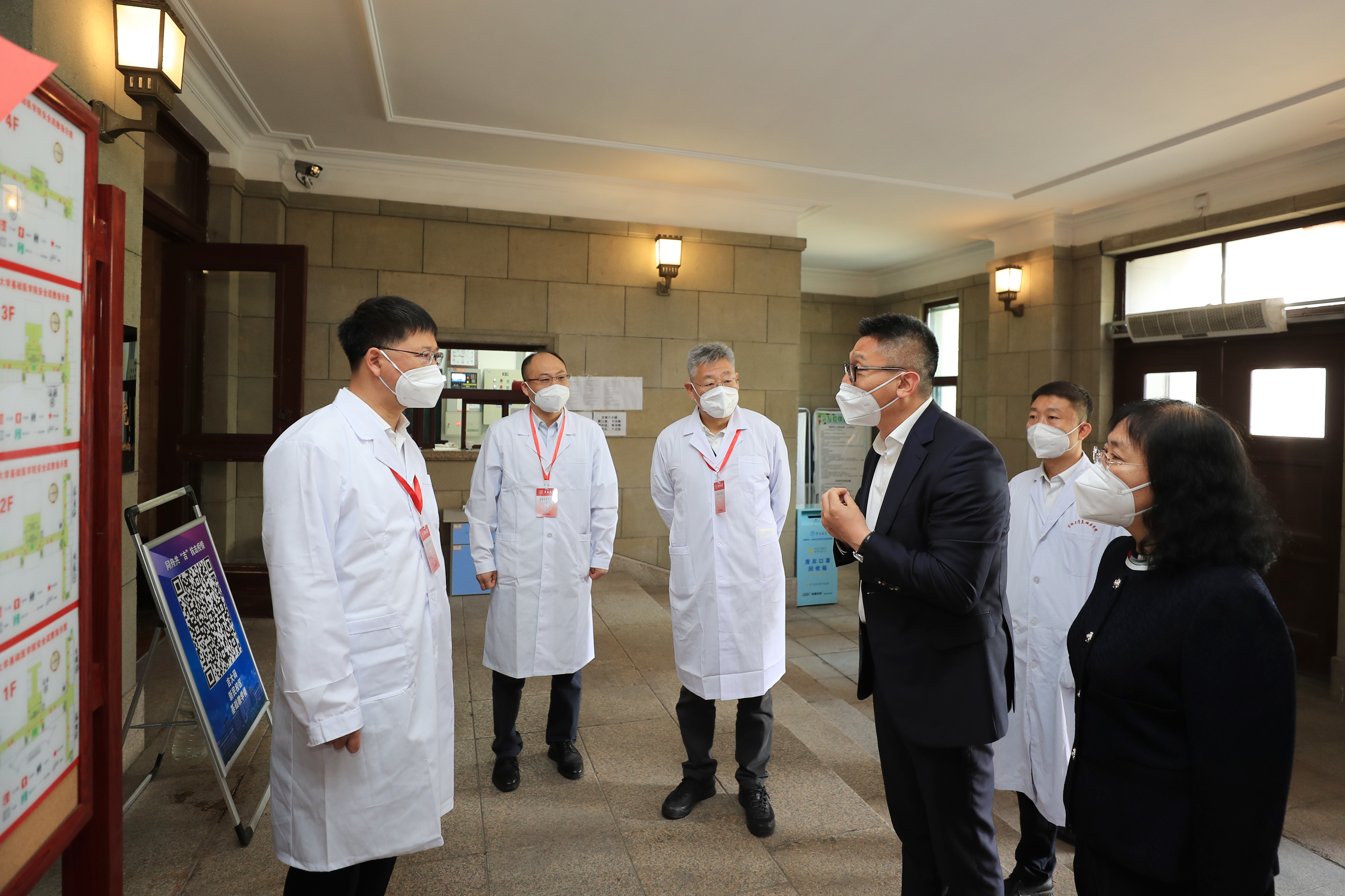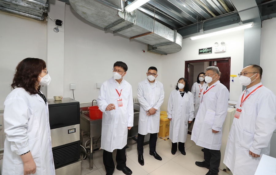 6月8日上午,校长张希来到基础医学院,对学校疫情防控过渡期间开放的部分实验室进行安全检查,听取实验室过渡期的安全管理和疫情防控工作汇报,看望在实验室学习工作的师生。学院党委书记王晓荣、院长王放陪同视察,张希走进实验室亲切询问师生返校后的科研生活情况,提醒师生注意实验安全和疫情防护。