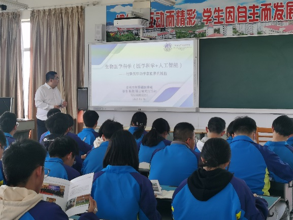 本次宣传活动受到了淳安中学领导的重视和热烈欢迎,校领导亲自在校门口迎接吉林大学教师团队,并带领教师团队参观学校校史陈列室。随后在接待室进行授牌活动,在授牌仪式上,陈龙副院长授予淳安中学“吉林大学优秀生源基地”牌匾,并肯定了淳安中学的教学质量和生源素质;淳安中学校长管社平表示要以“吉林大学优秀生源地”建立为契机,进一步加强与吉林大学的沟通合作。最后在高三教学楼517教室进行学生座谈活动,组织学生观看《筑梦启航在吉大》宣传片,使学生深入了解吉林大学学科建设、师资力量、人才培养、专业发展、学生就业和校园文化等方面,激发学生报考吉林大学的兴趣。李冬教授作了题为《生物医学科学——智慧医学科学家圆梦摇篮》的报告,并就学生感兴趣的问题进行了耐心解答。宣传会现场气氛热烈,达到预期宣传效果,相信该中学今后会有更多优秀学子报考吉林大学。