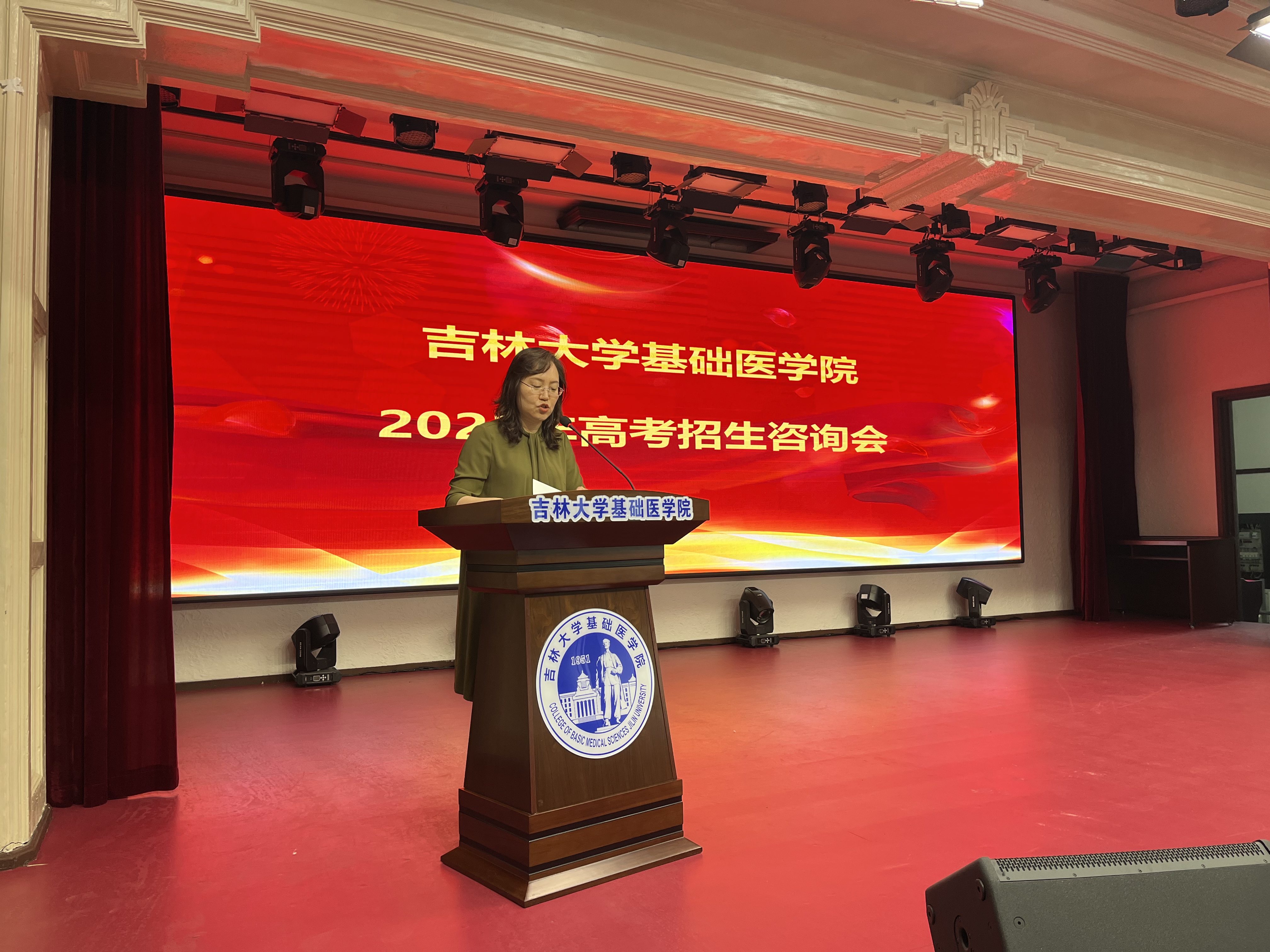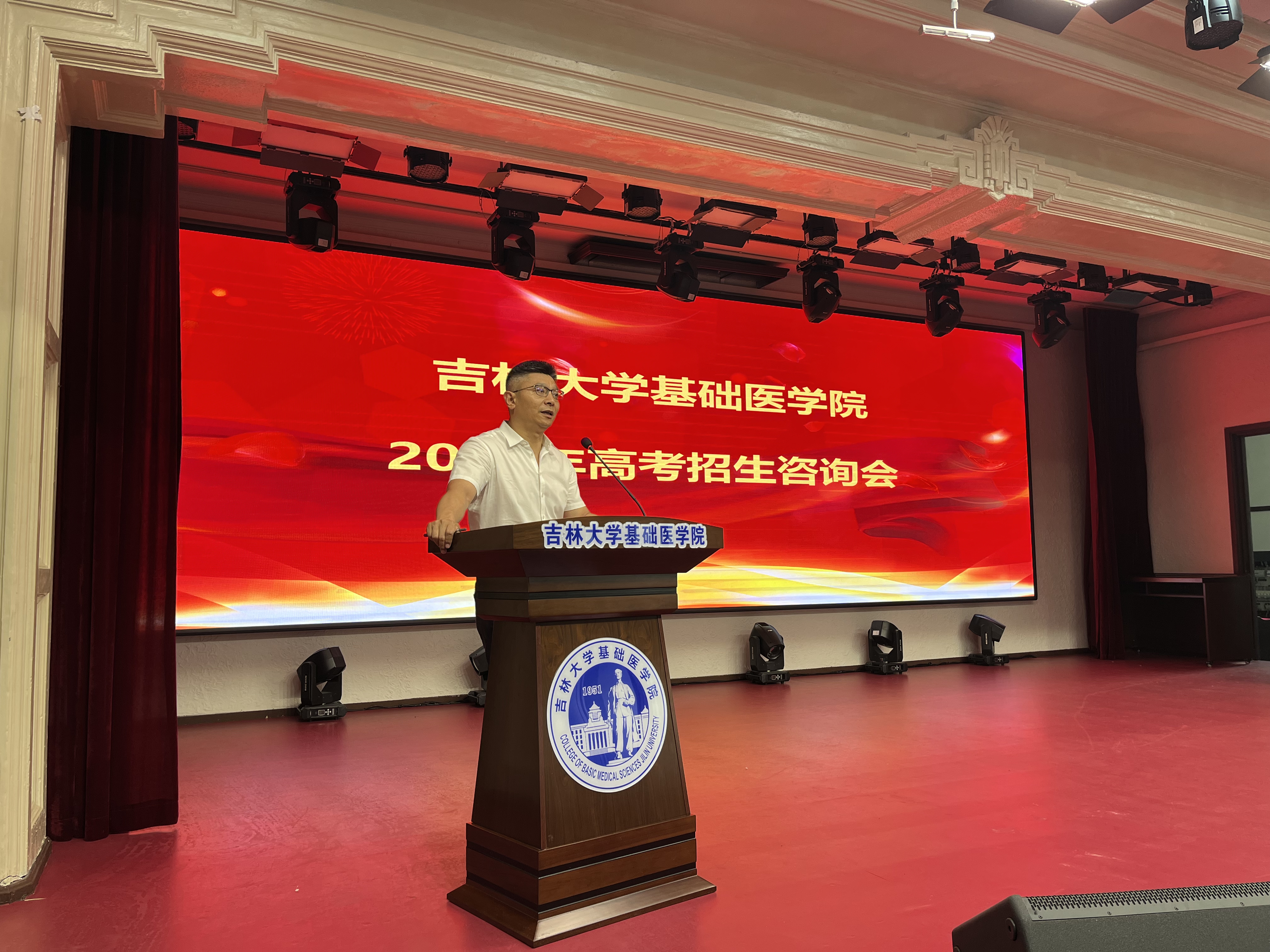 首先,全体参会人员观看了吉林大学生物医学科学专业宣传片,向广大考生和家长全面介绍了学院历史、师资力量、人才培养特色和创新实践成果等,让考生和家长充分感受到学院的学科实力和专业优势。随后基础医学院院长王放教授进行了致辞,介绍了吉林大学基础医学院辉煌的历史成就,以及创新人才培养举措等,从未来人类医学发展方向和国家科技创新发展的视角,进一步解读生物医学科学专业内涵和人才培养目标。副院长辛颖教授介绍了生物医学科学专业培养方案,就主干学科及核心课程、专业特色和专业方向等进行了解读。考生和家长们在听取了学院和专业介绍之后,提出了很多关于报考志愿、转专业政策、保研和未来就业方向的问题,学院老师们针对不同考生所处的分数排名给予了针对性的报考建议,对考生和家长们关注的核心问题给予了充分的解答,同时鼓励大家踊跃填报吉林大学生物医学科学专业,学院将为每一个学子的成长成才保驾护航,现场咨询交流取得了非常好的效果。