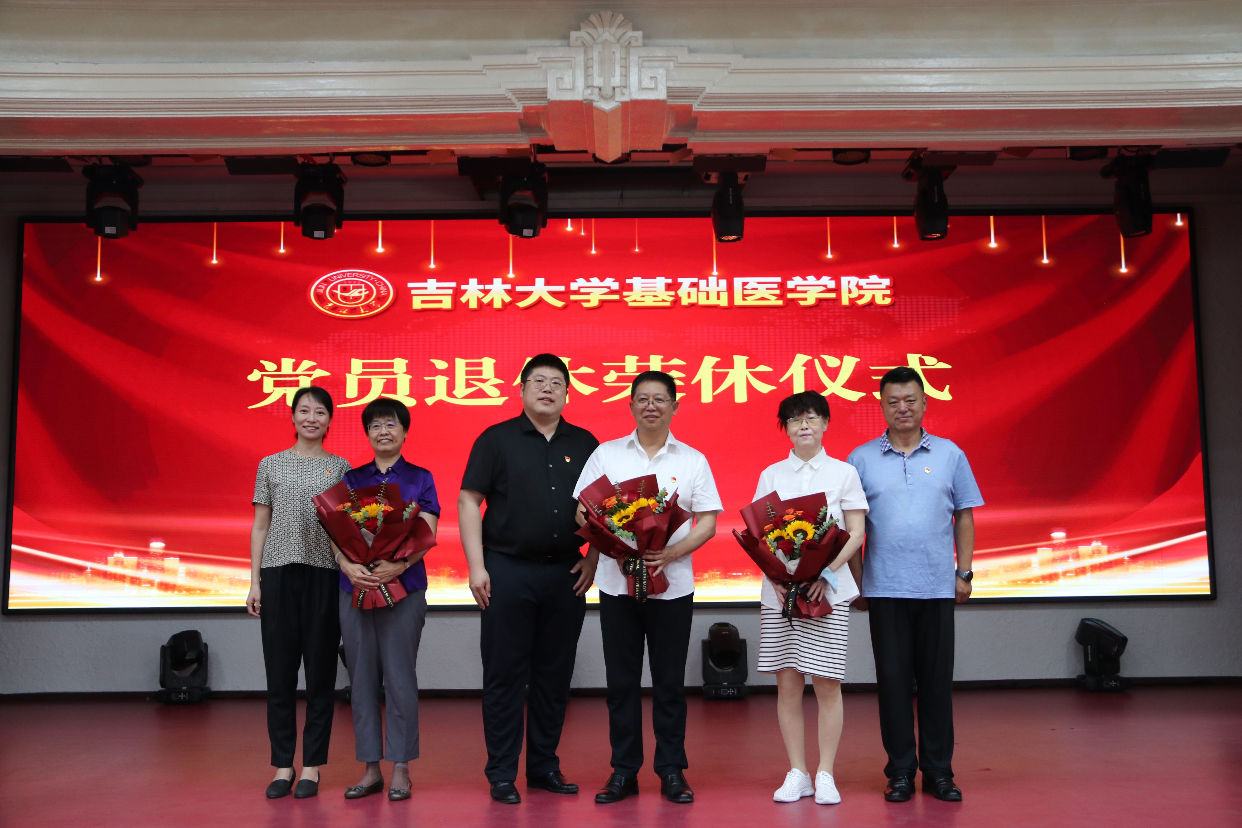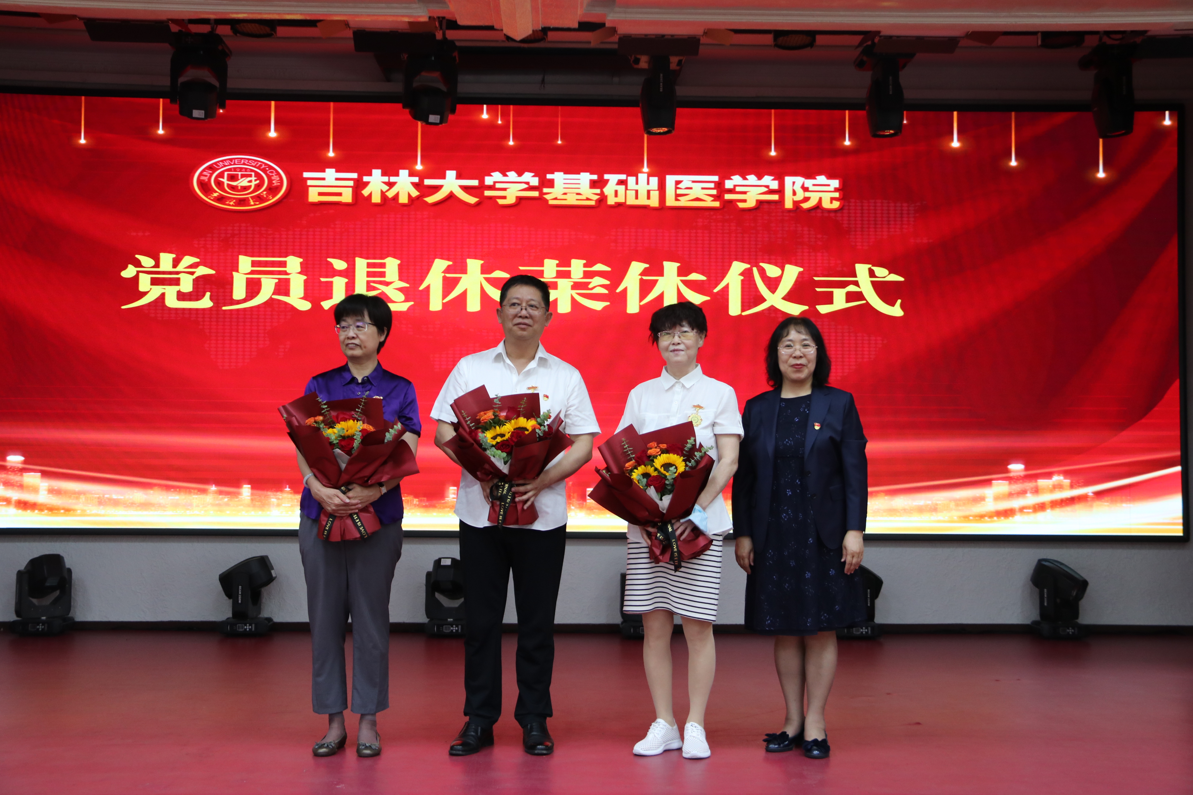 随后,学院党委举行了2023年基础医学院党员退休荣休仪式。退休党员所在支部分别为三位退休党员送上献花,党委书记王晓荣为退休党员颁发学院党委特殊制作的党员荣休纪念章。
