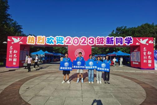 2023年8月25日,沐浴在清晨的日光下,基础医学院师生欢聚于五月花广场,来迎接小萌新的到来,迎新志愿者——基础医学院全体2022级本科生现场进行了精心的筹备,等待着大一学弟学妹们的到来。