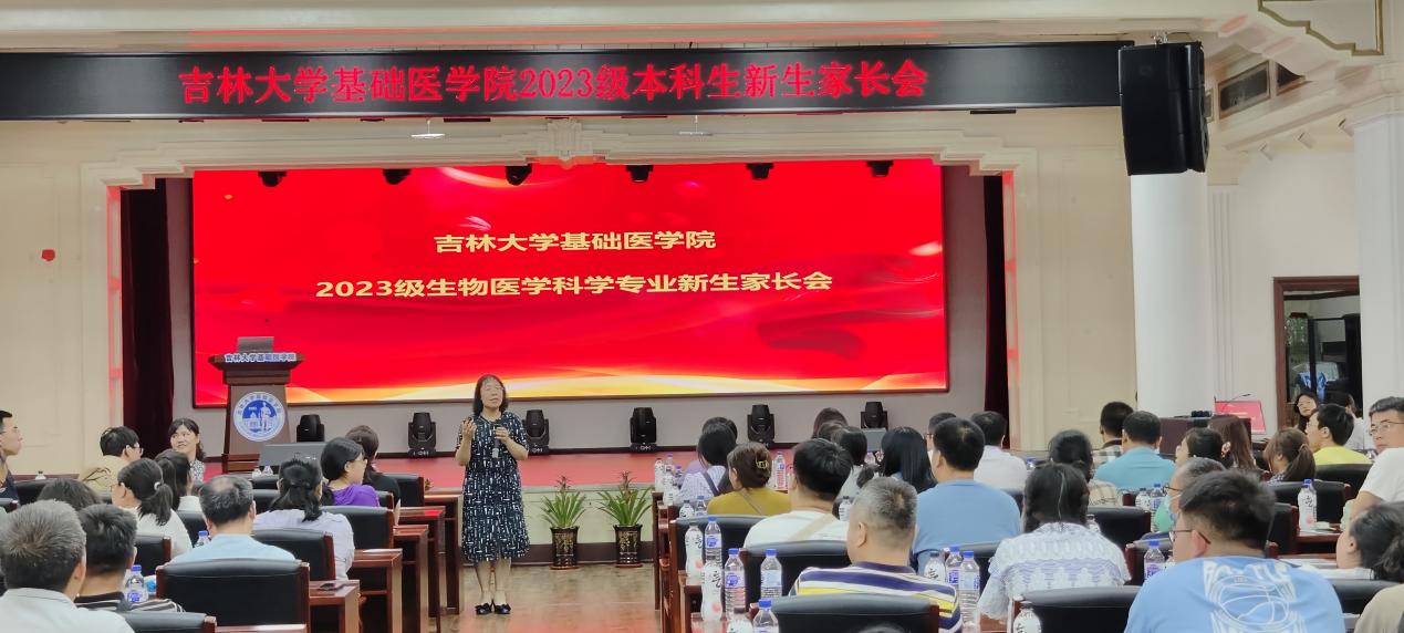 8月26日下午,吉林大学基础医学院2023级新生家长会在学院二楼学术报告厅举行。基础医学院党委书记王晓荣、副书记李东洋、生物医学科学系主任张灵、2022级本科生代表王淇和2023级全体新生及新生家长参加了本次家长见面会。会议由副书记李东洋主持。