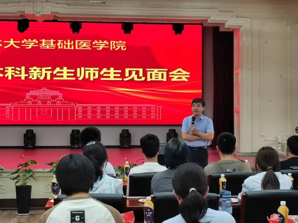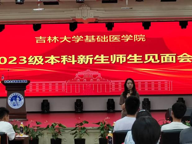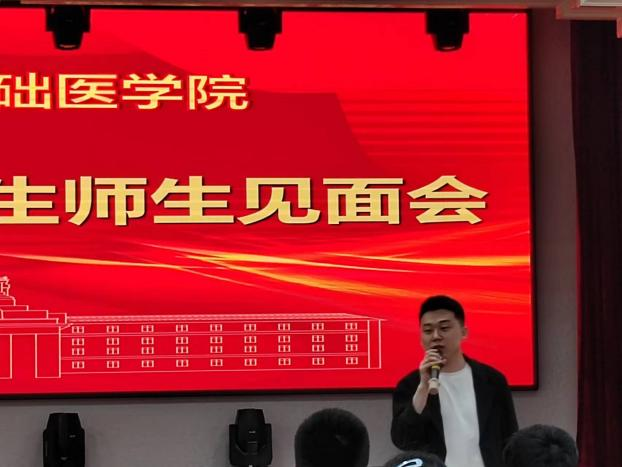 历迢迢千里逐梦,破层层巨浪扬帆。为进一步加强师生之间的联系,帮助新生更好地熟悉学院和专业,更快地适应大学学习和生活。9月17日下午,基础医学院在二楼报告厅举行了2023级本科新生师生见面会。学院党委副书记李东洋,团委书记孙佳钰,2023级本科生班主任辛卓远、闫天昊,研究生兼职辅导员吕欣妍,本科生辅导员助理陈治利、刘天琪和2023级全体本科新生参加了活动,党委副书记李东洋主持了本次师生见面会。
