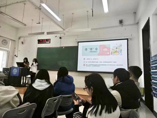 活动的班会阶段,总共有三个小游戏,首先进行的是“传手令”活动,由第一位同学在组织者手中随机抽取一个成语,并用肢体语言阐述含义传递给下一位同学,直至最后一位同学正确的说出成语名称才算胜利。其次进行的是“看看谁最快”活动,要求参赛者以抢答的方式反述主持人所说内容,字数依次增加,坚持到最后的小组胜利。活动中,同学们由刚开始的“张不开嘴”到最后争先恐后的抢答,每个人都在迅速调整状态以适应新的挑战。在这两个小游戏中,同学们纷纷表现出自己独特的反应能力,尤其是对于刚刚加入基础医学院这个大家庭的转专业同学,本次班会无疑是他们融入班集体认识新朋友的绝佳机会。