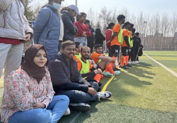 比赛开始,队员们展现出高昂的斗志与团结一心的精神面貌,攻防转换节奏紧凑,传球配合默契。首战面对强劲对手毫不畏惧,迅速进入比赛状态。队员凭借敏锐的洞察力和出色的个人技术突破对方防线,创造了多次具有威胁的射门机会。上半场临近半程,来自印度的2019级留学生SHUBHAM通过角球,头球摆渡,率先攻破对方球门,为我院取得1:0领先。下半场易边再战,还是由SHUBHAM同学,沿左路突破,甩开多名防守球员后冷静起脚,足球划过对方守门员十指应声入网,个人连中两球。比赛临近尾声,2018级留学生SHIBILY 接中场队友助攻,一记势大力沉的临空抽射,再次洞穿对方球门,最终比分定格在3:0。