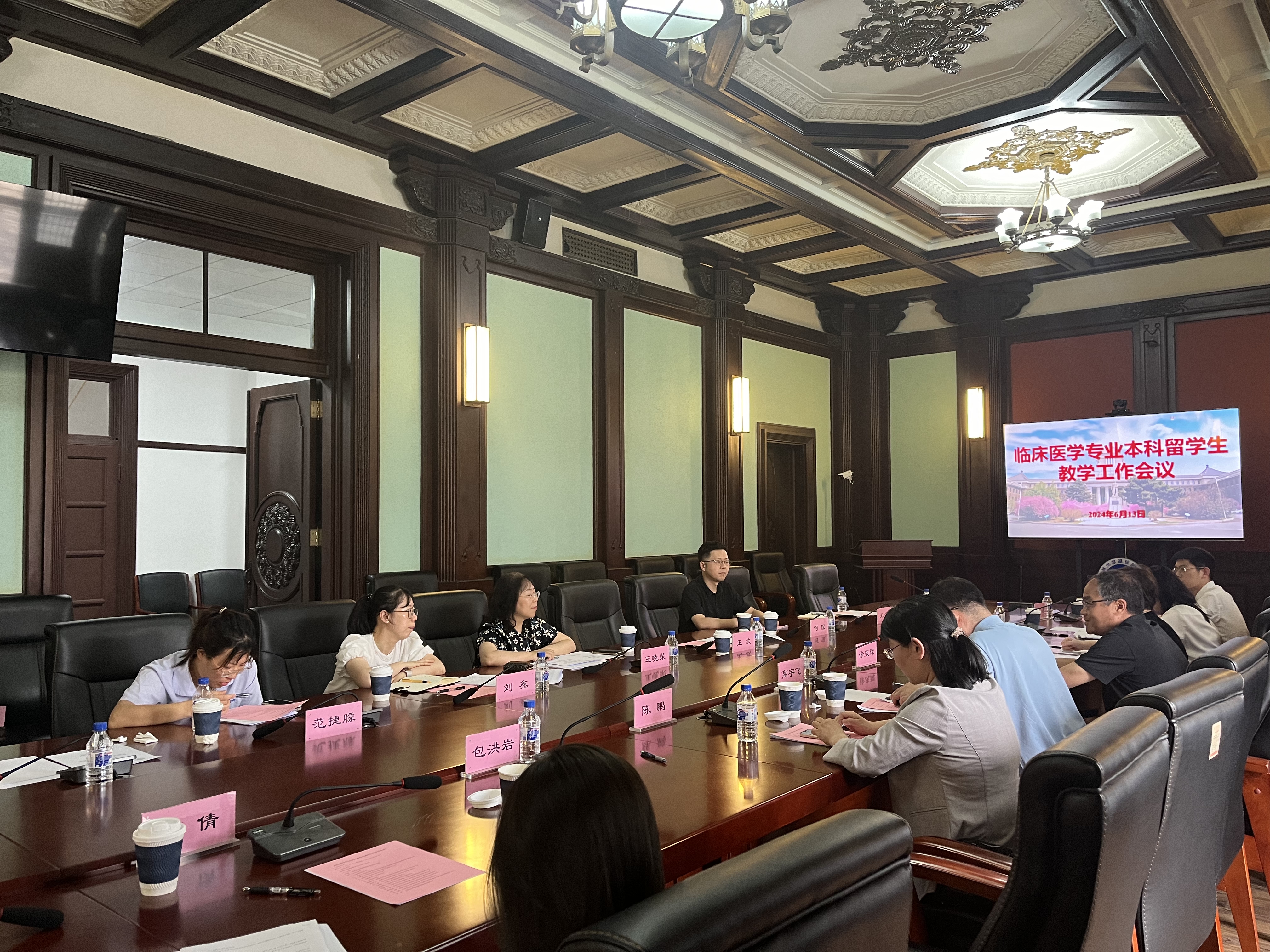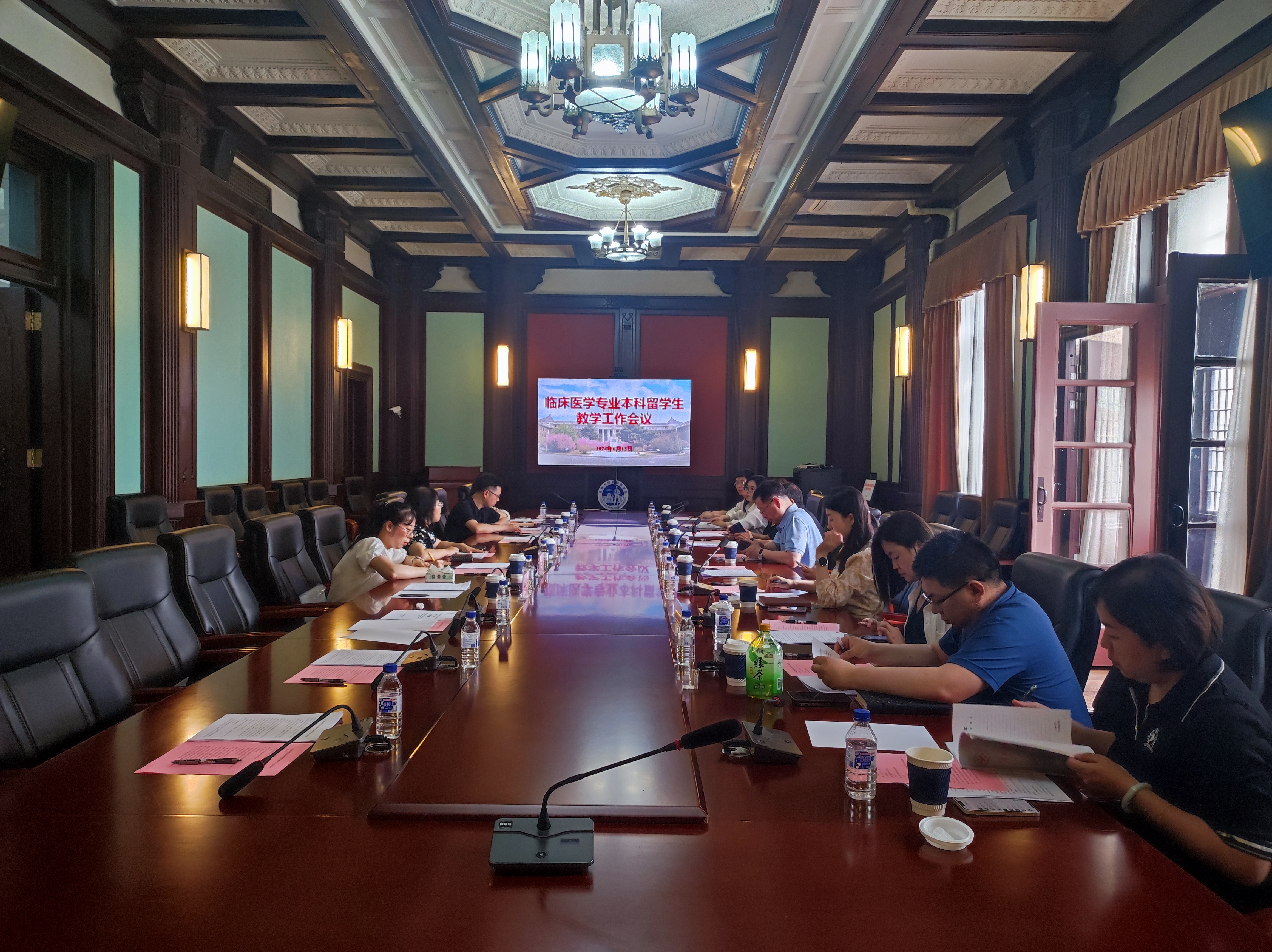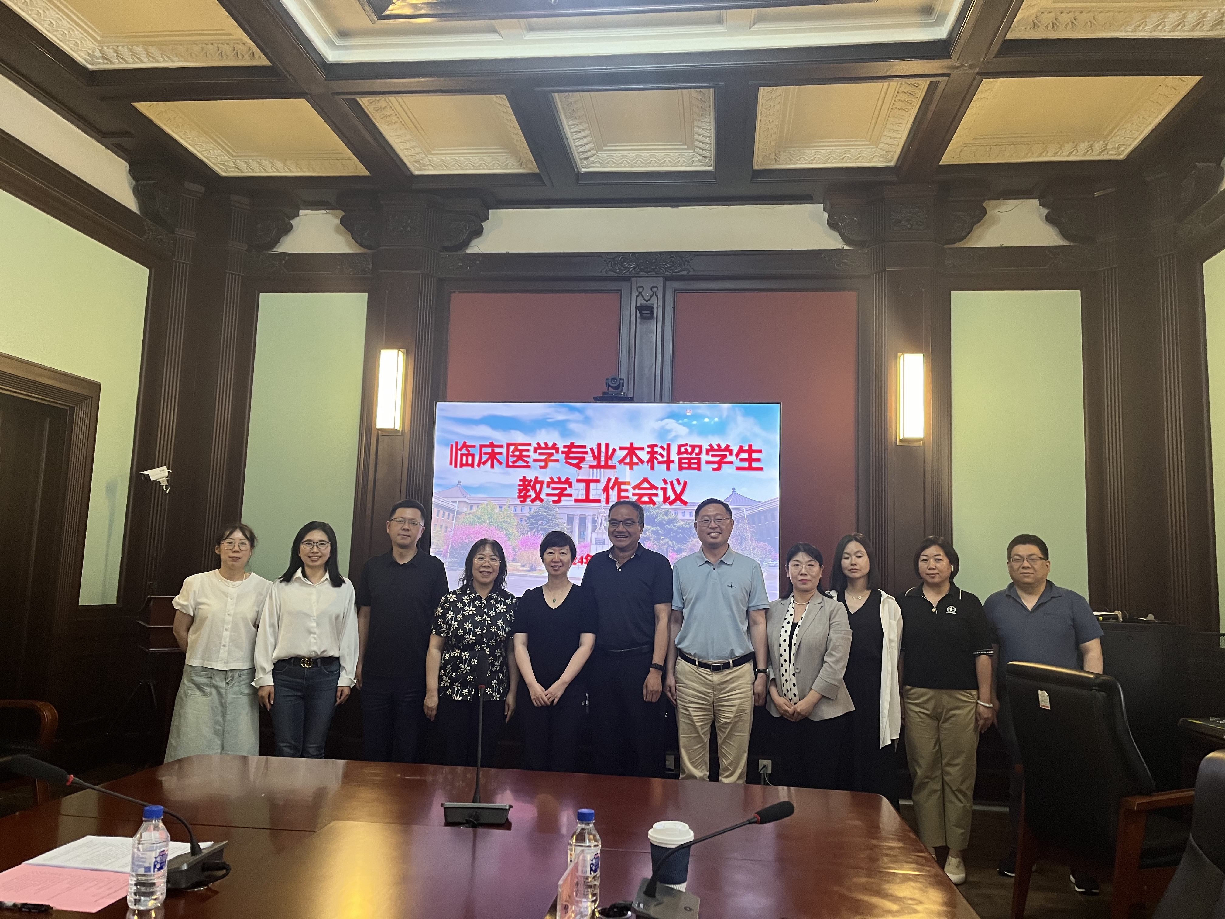为进一步提高医学留学生教育质量,积极推进留学生教学工作,完善来华留学教育质量保障体系,促进留学生教育健康、稳定发展,6月13日下午,基础医学院组织召开临床医学专业本科留学生教学工作会议,吉林大学白求恩医学部医学教育办公室副主任徐庆辉、吉林大学白求恩第一医院、吉林大学白求恩第二医院、吉林大学白求恩第三医院的部分领导、专家以及教学秘书、基础医学院党委书记王晓荣、基础医学院留学生办全体工作人员参加会议,会议由基础医学院院长助理何侃主持。