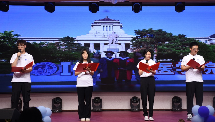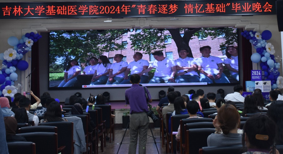 书页翻过,韶华逝去,六月末,傍晚的风声里盛夏渐进,声声离别中,稚鸟终将振翅离巢,飞往那无边的旷野与苍穹。为欢送2024届毕业生奔赴前程,6月20日晚,我院隆重举办“青春逐梦 情忆基础”2024年毕业晚会。吉林大学党委研究生工作部部长赵玥、吉林大学学生就业创业指导与服务中心副主任贾晓辉、国际教育学院副院长崔鲜花、国际教育学院副院长刘洋、白求恩医学部医学教育办公室副主任徐庆辉应邀出席,基础医学院院长王放、党委书记王晓荣、党委副书记李东洋、副院长李洪岩、副院长辛颖、副院长孙巍、副院长陈龙,以及各学系主任和师生代表共同观礼。