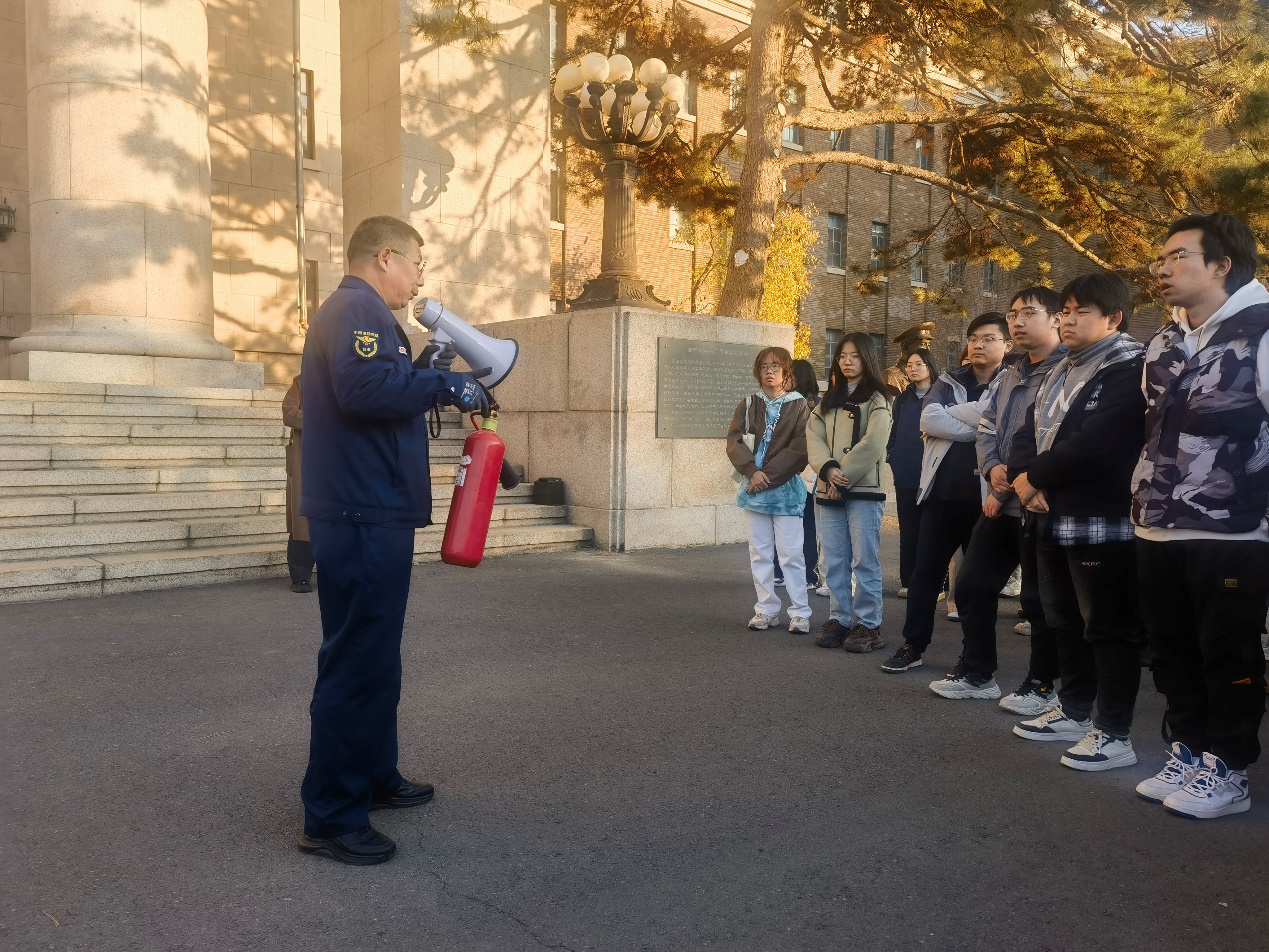 培训结束后,学院组织了疏散逃生和消防灭火实操演练活动,按活动前安排,学院组成由通讯组、疏散组、灭火组、医疗组、保障组组成的演练消防队,随着模拟浓烟升起,消防队帮助师生熟悉疏散逃生路线、掌握疏散逃生技能。大家手捂口鼻、弯下腰迅速有序地从指定楼梯和安全出口逃生,撤离到楼外的安全地带。随后,新民校区保卫处安志成老师详细演示了灭火毯、灭火器的用法,并指导老师和同学亲身体验,现场使用灭火毯、灭火器扑灭初期火灾,提升了突发情况的应急处置能力。