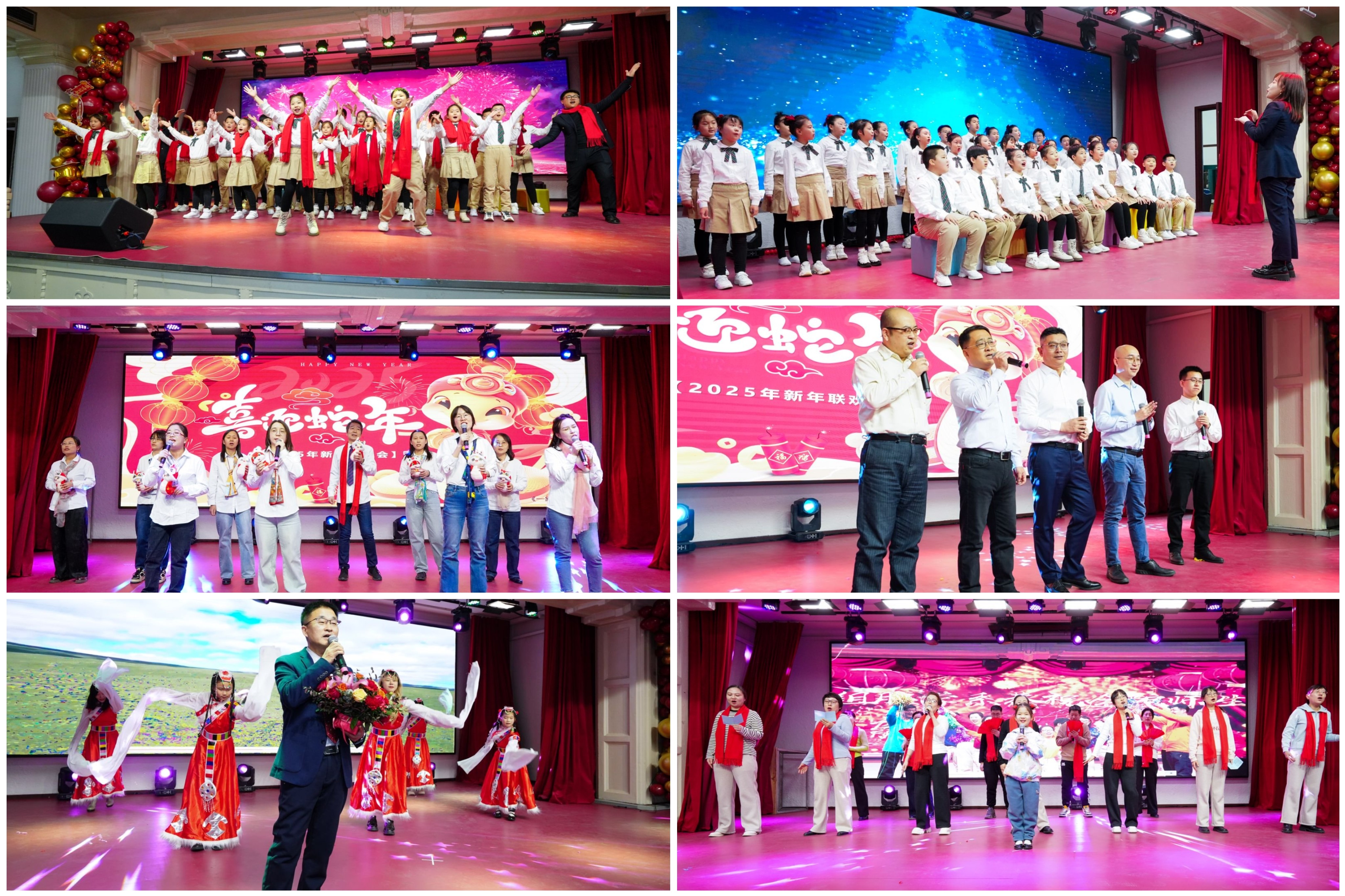 联欢会在长春市第一实验银河小学星星合唱班孩子们演唱的一曲《爱漫天空》中拉开序幕,优美的童声仿佛带我们进入了梦幻的世界;教职工第一党支部带来的扇子舞《雪龙吟》,将中华古典舞蹈完美的呈现,让我们领略了老师们的风采与活力;白求恩医学部王曦老师带来的独唱《木鱼与金鱼》,让现场观众深深沉浸在歌曲的旋律与情感之中;王放院长与智加未来、华为两位企业嘉宾合唱歌曲《跟往事干杯》,用歌声对过去致敬,同未来举杯,将现场气氛推向了新的高潮;组织学与胚胎学系带来的小合唱《财神快点来》,免疫学系、细胞遗传学系以及实验教学中心三综合带来的小合唱《一路生花》让我们感受到了浓浓的喜庆与祝福;丁健峰老师和他可爱的儿子表演的相声《说好不说好》让现场欢声笑语不断;来自吉林省艺术学院的实力唱将刘华晨老师演唱的歌曲《日落大道》和《男孩》,惊艳全场;病理学系带来的歌伴舞《苹果香》、生理学系的歌伴舞《万疆》,生物化学学系,实验教学中心二综合及测试中心合唱的《少年的你啊》,纷纷展现了学院教职工蓬勃向上的精神面貌,赢得了阵阵喝彩;学院留学生班主任及四位留学生同学带来的歌曲《恭喜发财》,将不同文化的魅力融合在音符间;白求恩医学部张博老师带来的魔术《654俱乐部》精彩纷呈,让人眼前一亮;最后由基础医学院星光师生合唱团带来大合唱《灯火里的中国》《不忘初心》,铿锵有力、激情澎湃,传递着团结与奋进,表达了对学院的美好祝愿,为联欢会画上了圆满的句号。