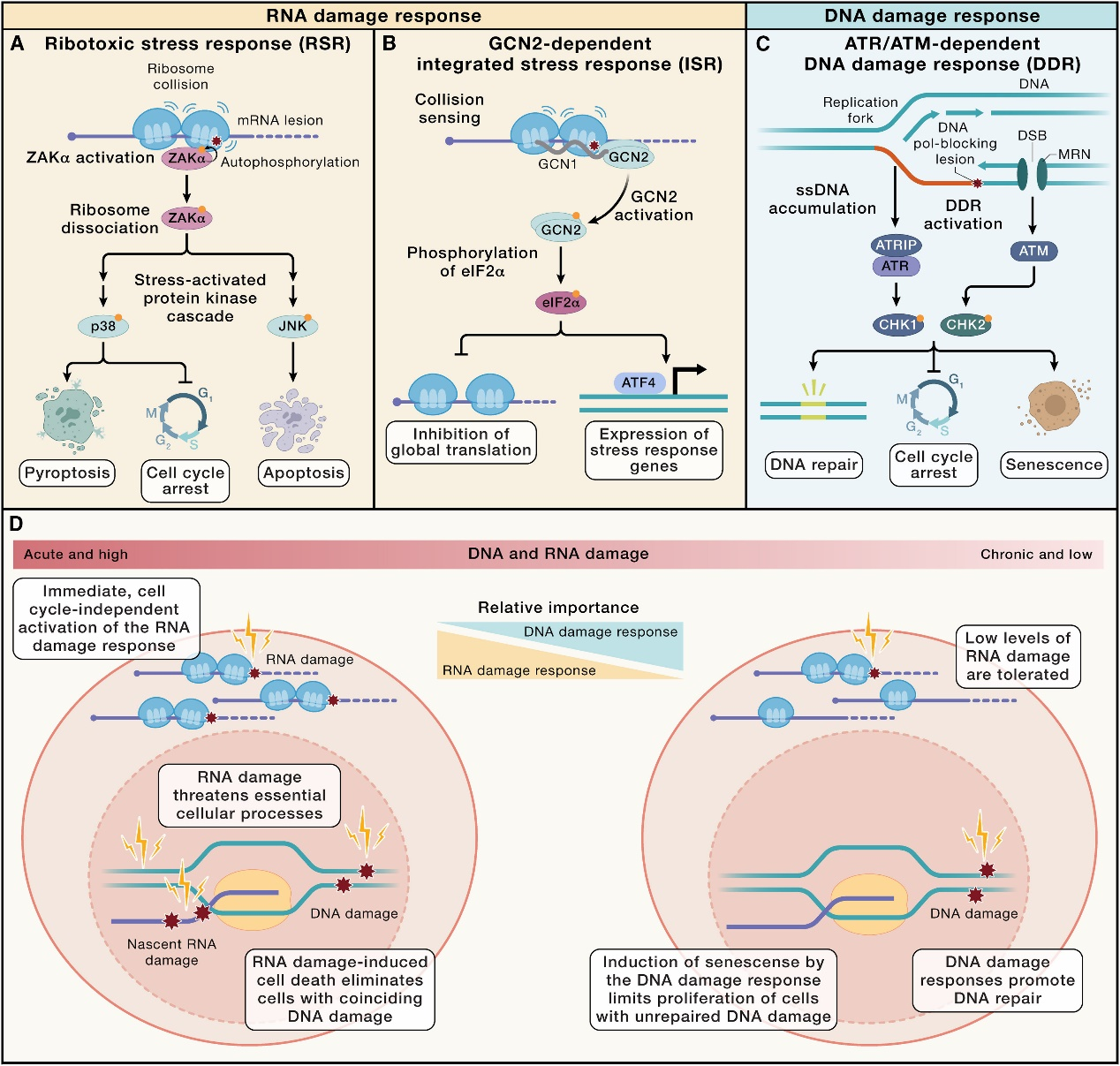 图1.细胞对RNA损伤和DNA损伤的信号响应