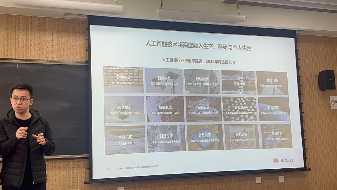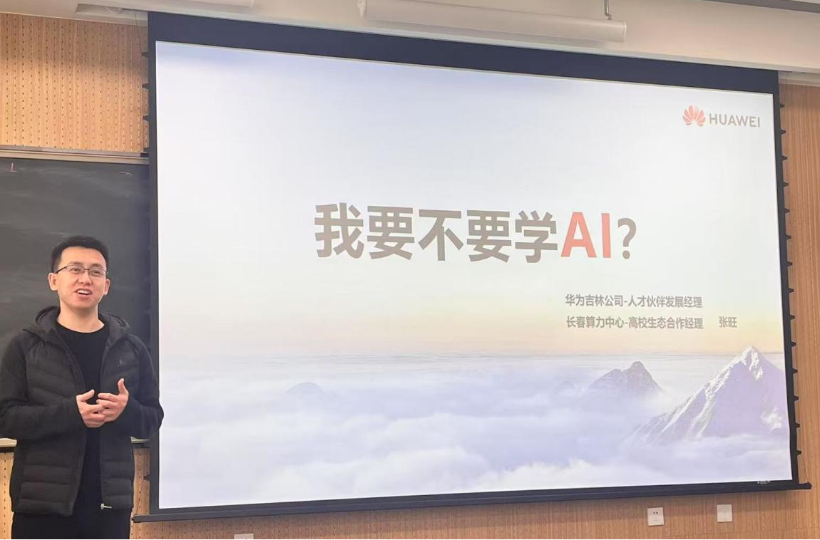 4月15日,基础医学院邀请华为吉林公司人才伙伴发展经理、长春算力中心高校生态合作经理张旺为我院2022级本科生带来一堂以《我要不要学AI》为主题的就业指导分享课,讲座聚焦人工智能行业发展与医学应用。为同学们打开了一扇将基础医学通向人工智能的窗口。学院党委副书记李东洋参与本次分享课。