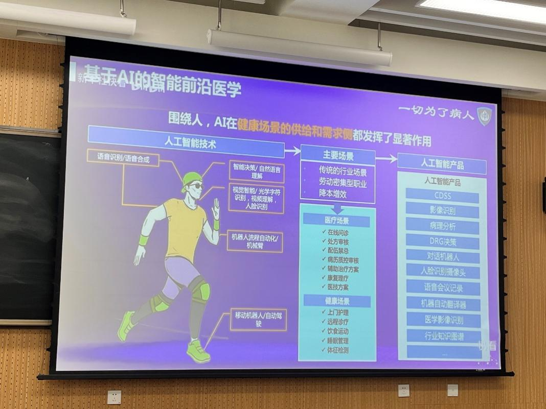谈及未来的职业方向,符维思经理引用了院长王放教授的话:“人工智能时代已经来临,与其被动接受,不如主动拥抱”他提到,尽管当今AI与医学能紧密结合,但在工作中还是会出现缺乏医学知识而使项目进展困难的情况,因此具备计算机与医学知识才是AI赋能医疗事业最好的方向。 “AI+医学是一个充满挑战但也极具成就感的领域,需要从业者兼具技术能力与医学人文关怀。”他鼓励同学们在专业学习中拓宽视野,关注交叉学科的发展趋势,为未来职业发展打下坚实基础。