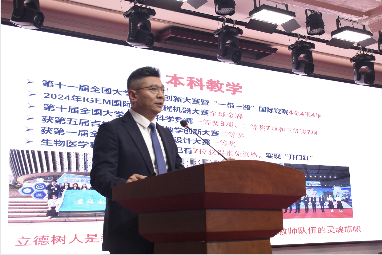 金秋送爽,丹桂飘香。为弘扬先进、树立典型,营造尊师重教的浓厚氛围和良好风尚,激励广大教师坚守初心、担当使命。9月10日下午,在第41个教师节来临之际,基础医学院隆重召开2025年教师节表彰大会。学院党政领导班子成员、各学系主任、师生代表等一百余人参加大会。会议由党委副书记兼副院长李东洋主持。
