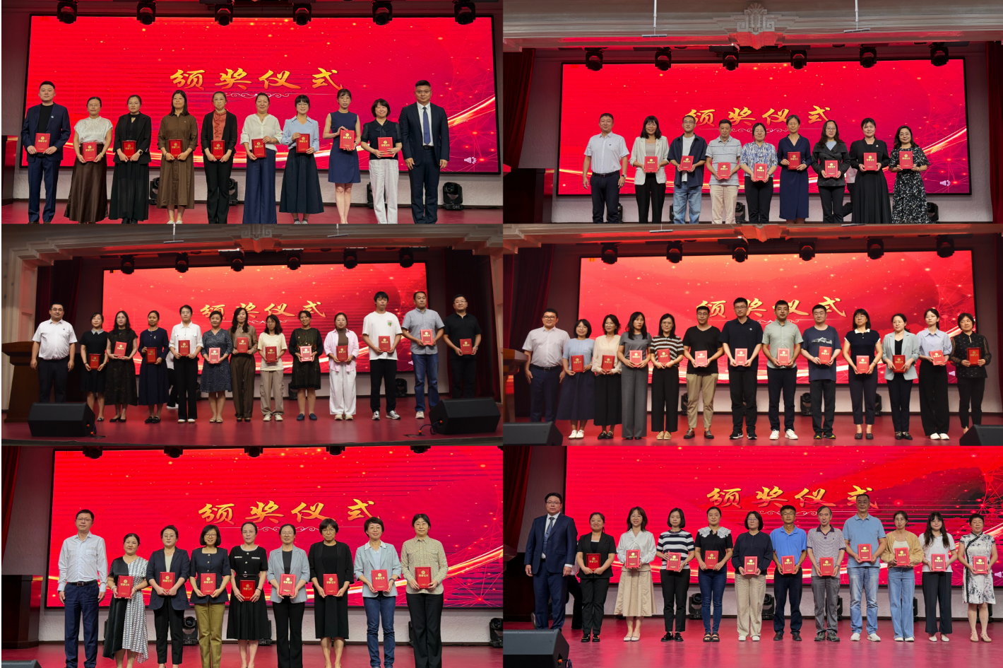 获奖教师们在热烈的掌声中走上台前,学院领导班子成员先后为他们颁发荣誉证书并合影留念。