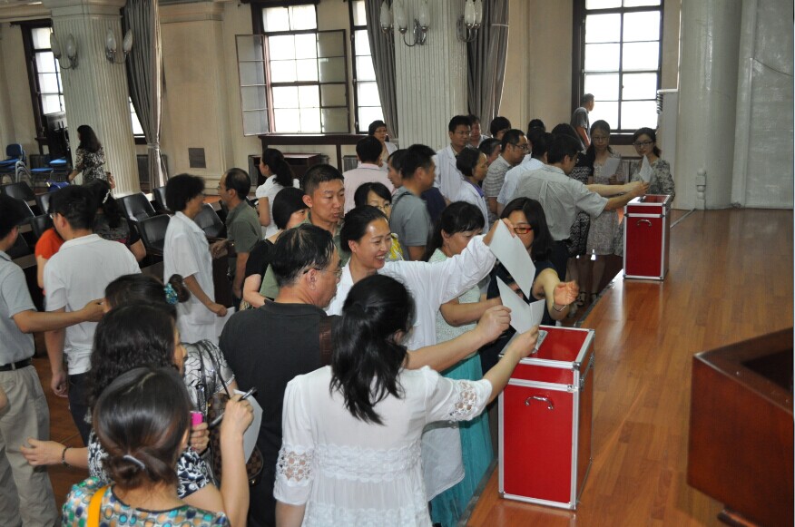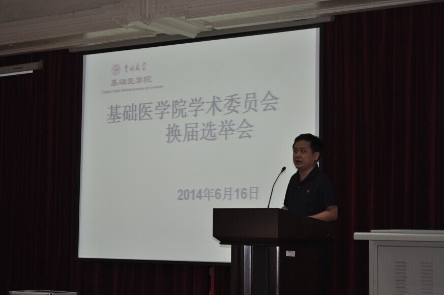 2014年6月16日上午,基础医学院在二楼多功能报告厅召开学期工作总结及学术委员会换届选举会议,全院高级(正、副高)专业技术职务人员参加会议。会议由院长孙连坤主持,党委书记孙赵华等班子全体成员出席大会。