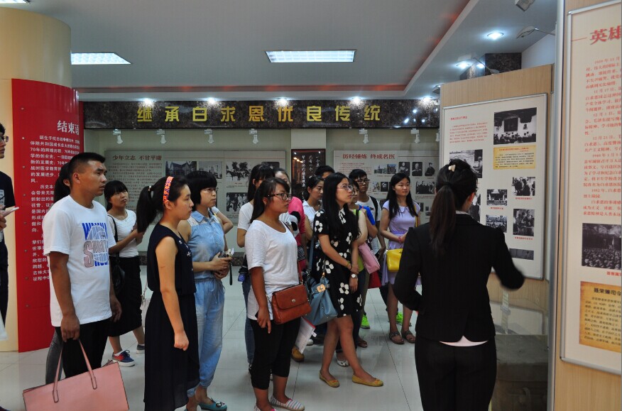 9月2日下午,在基础医学院党委书记孙赵华、党委副书记费淑波、研究生办公室主任丁红枫老师的带领下,基础医学院2014级研究生分两批参观了吉林大学白求恩医学纪念馆。