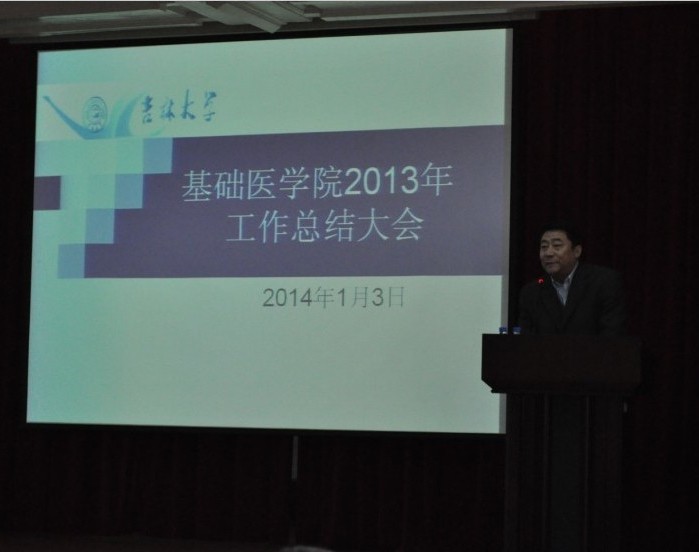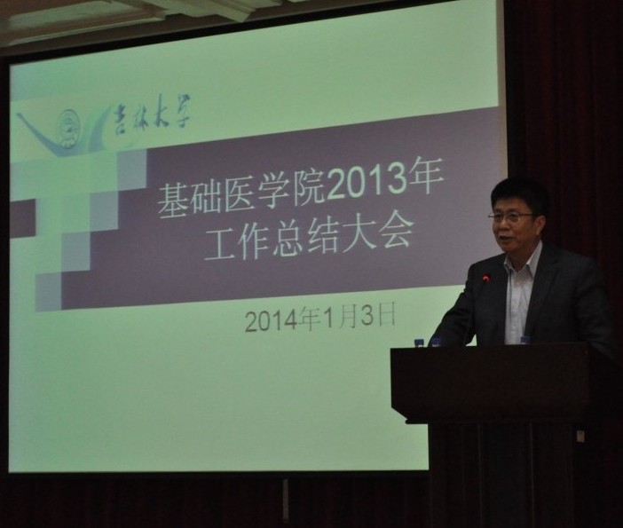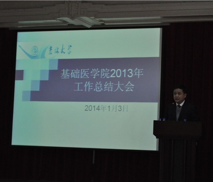2014年1月3日下午,基础医学院在二楼报告厅召开了2013年工作总结大会。吉林大学副校长兼白求恩医学部学部长王冠军、白求恩医学部常务副学部长李凡、党工委常务副书记高继成、副学部长徐红、副学部长兼医院管理办公室主任高占东、党工委副书记兼纪工委书记屈英和等出席会议,学院全体教职工和研究生代表参加大会。会议由学院党委书记孙赵华主持。