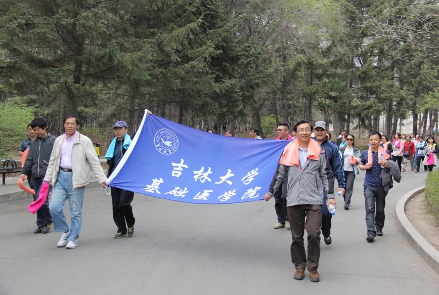 2014年4月23日下午,基础医学院工会在南湖公园举办了环园徒步健身活动。伴随着现代生活节奏日益加快、各种压力日益增多,为倡导以健康的体魄面对生活和学习,养成保持体育锻炼的良好生活习惯,经院党委倡议,在院长孙连坤等院领导的带领下,60余名教职员工在春花烂漫的南湖公园参加了此次徒步健身活动,全程约为5公里,历时约50分钟。
