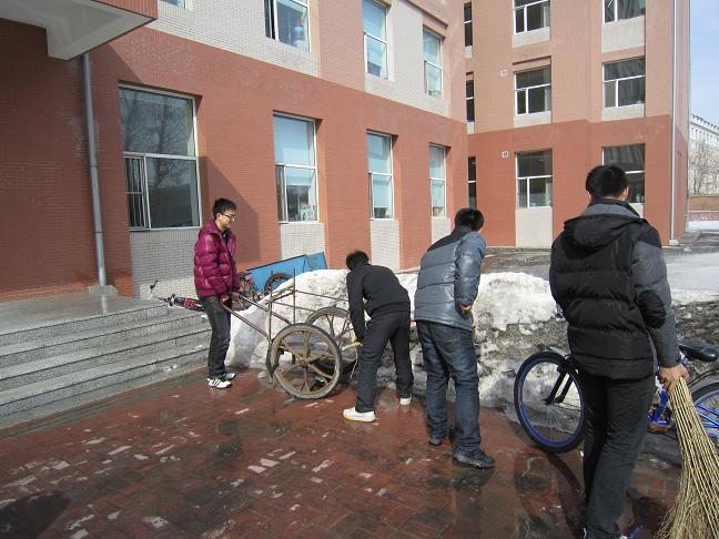 为深入开展“五员”进社区服务,践行雷锋精神,白求恩医学院同学们纷纷走进社区,积极开展服务社区,贡献社会活动,弘扬雷锋精神。适逢长春骤降大雪,701103、701203、701204、701207等团支部分别在校园、社区开展了清扫积雪活动,为过往的行人带来了方便。与此同时,701101、701201、701203以及701209团支部走进校园周围的社区进行了小广告的清除工作。3月8日至9日,701103团支部在吉林大学中心校区基础园区一公寓举行了爱心义卖。另外,701201团支部清扫了李四光楼,701110团支部走进社区开展了捡拾垃圾及清扫活动,701206团支部在吉林大学中心图书馆帮助工作人员整理书籍,各团支部都以各自特有的方式感悟着雷锋精神,体会着奉献的快乐。