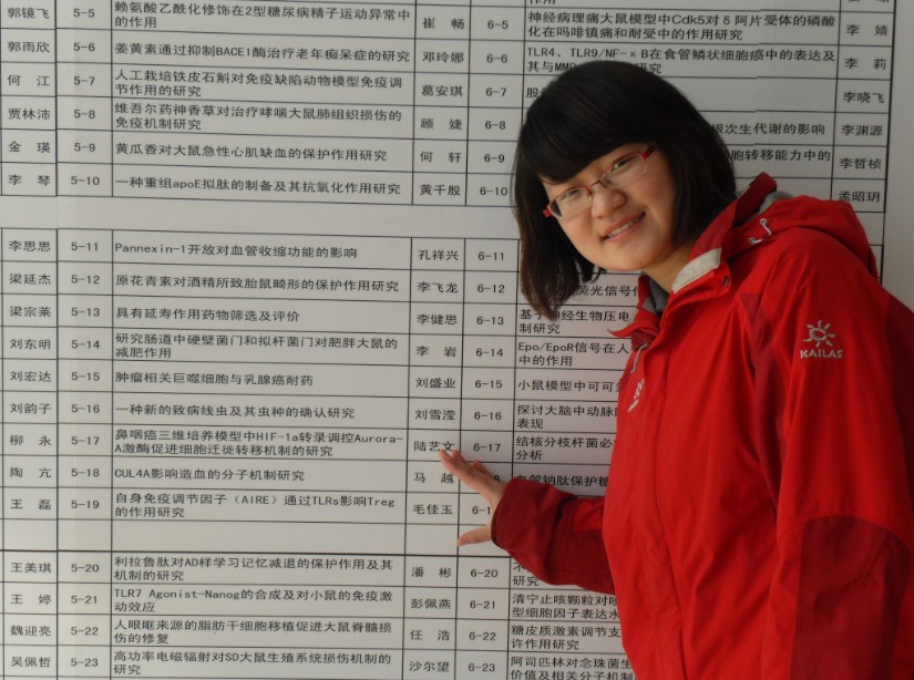 头脑的充实使人生不再庸碌,无私的奉献使青春不再单调,忙碌的学习、工作并未减退她对志愿服务和科研创新的兴趣。在闲暇时间,她积极参加志愿活动,传递温暖,播撒阳光,从奉献中收获幸福与感动。在大一时毛佳玉就获得了中国志愿者注册服务证,积极参与扶残助残实践活动,并担任“挑战杯”一汽-大众中国大学生创业计划竞赛等活动的志愿者。在志愿服务中思考人生价值,体察生命意义,凭借着优秀的表现,她荣获2011-2012年度白求恩医学院社会实践活动优秀个人和优秀实践报告奖。在科研创新上,从对学长学姐的崇拜和羡慕到亲自参加比赛,她的创新实践能力不断提升,并获得2011-2012年度院首届“创新论坛暨创新实验设计大赛”三等奖。近日,她又代表学校参加了在天津举办的“第二届全国大学生基础医学创新论坛暨实验设计大赛”并荣获全国三等奖。创新实验使她在思维的碰撞中驰骋想象,加深对知识的理解与运用。