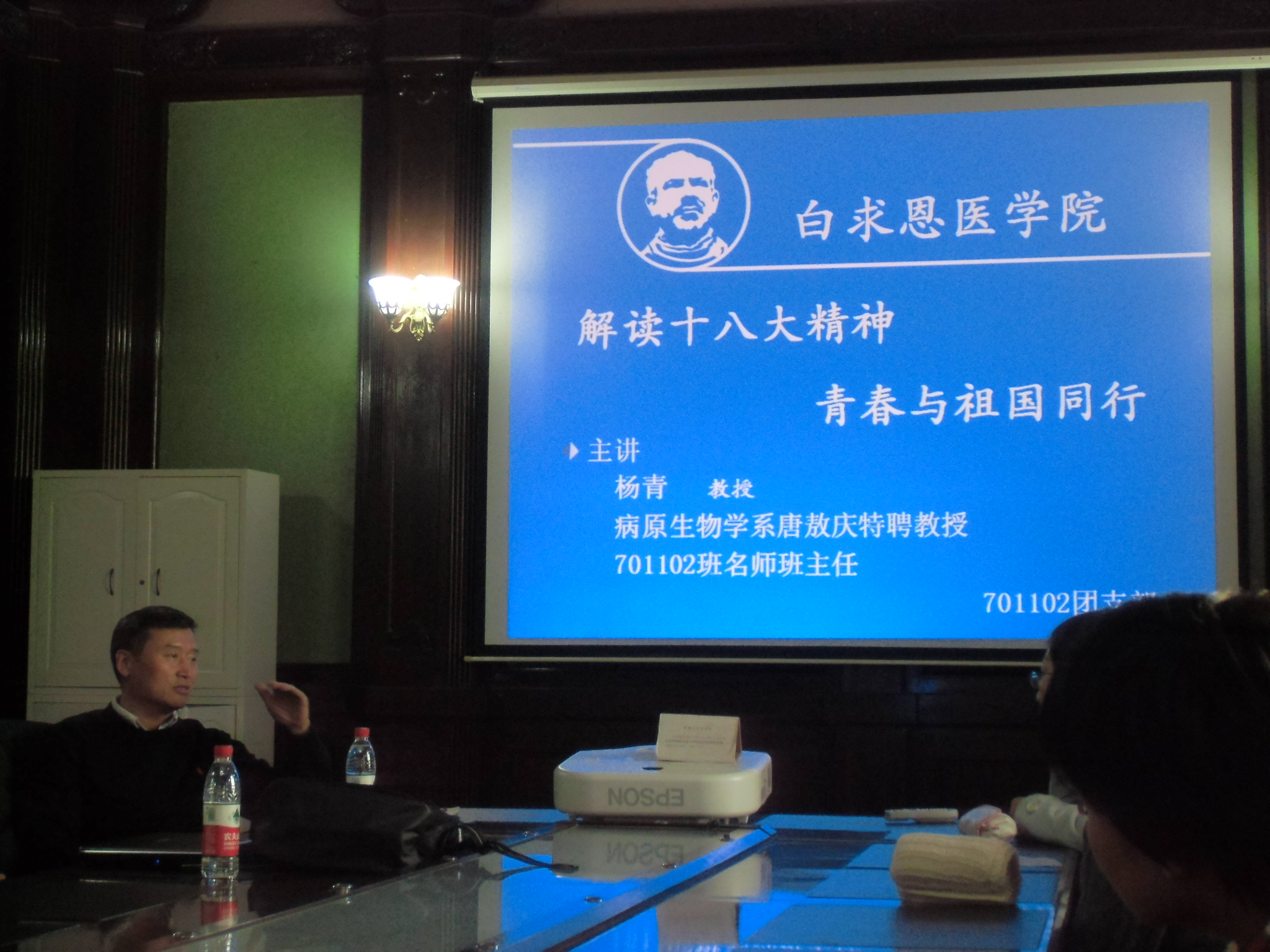 11月25日下午,白求恩医学院病原生物学系唐敖庆特聘教授杨青在新民校区基础楼四楼会议室与所带班级701102班全体同学召开主题班会。