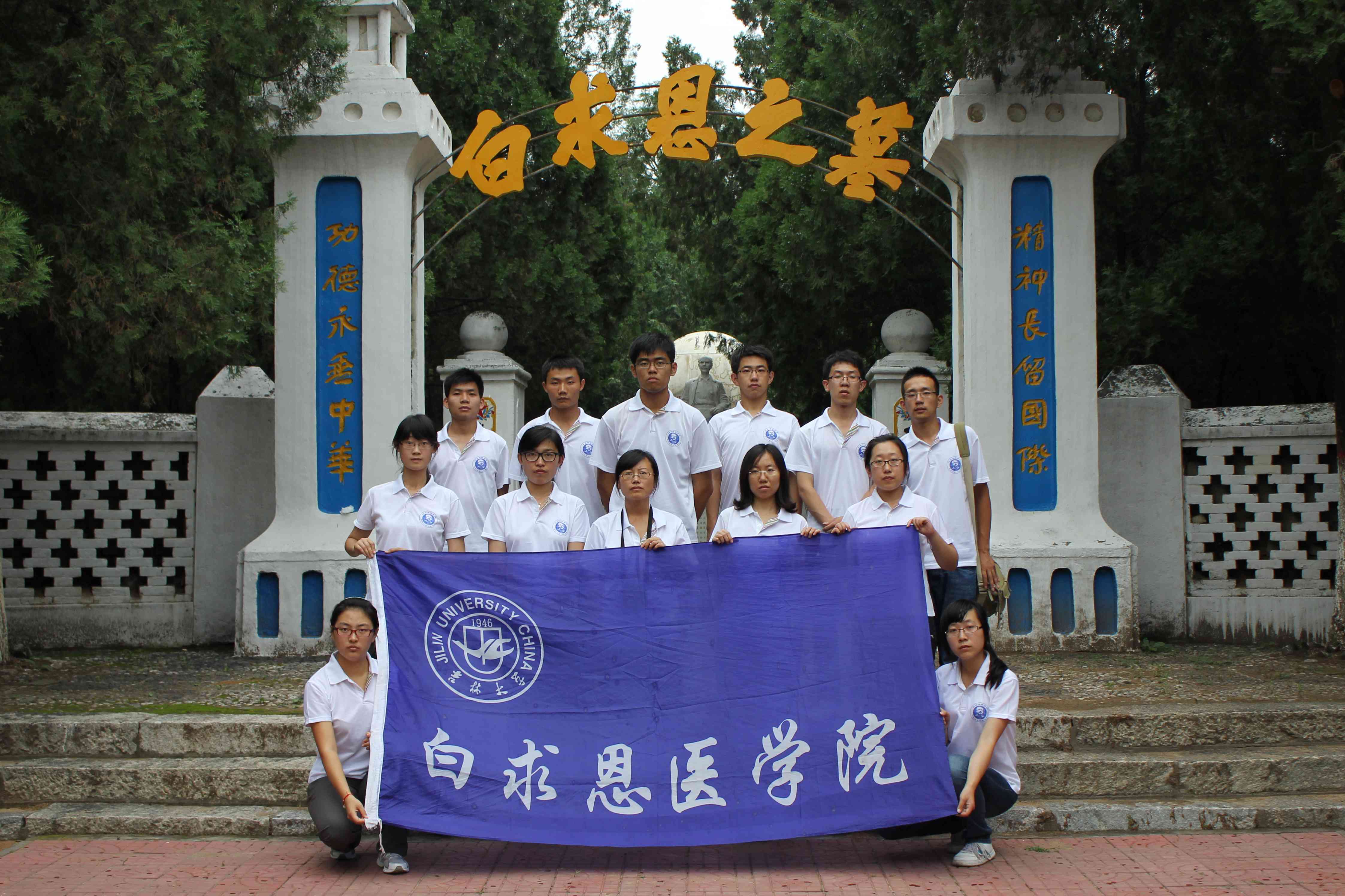 2012年暑期,随着白求恩医学院暑期社会实践系列活动拉开帷幕,河北唐县社会实践小分队也开始紧锣密鼓的筹备起来。7月8日早,带着学院领导的嘱托,带着全院学生的祝福,社会实践小分队全体成员踏上了前往北京的火车。一路上,大家一直在兴奋地讨论即将在唐县的生活,每个人都充满了好奇与希望,并为医疗服务和各自支教的课程精心准备着。经过7个小时的旅途,终于到达了首都北京。首都虽然繁华,但队员们无心游玩,分头购置带给孩子们的电脑、打印机和书籍。短暂的休整之后,9日早,在细胞生物学系老师孙娇和辅导员魏宇航的带领下,我们坐上了去往唐县的车。车子很小,东西很多,但队员们没有抱怨,山路很崎岖,队员们也没有懈怠,经过三个多小时的颠簸,终于到达了唐县。一进县城,就随处能看到弘扬白求恩精神,学习白求恩“毫不利己,专门利人”品格的宣传牌和宣传标语,队员们深深地体会到了,这里是白求恩精神的发祥地,更是所有白医学子的精神根源。县团委全体工作人员热情地迎接我们的到来。交谈中,他们向老师和队员们介绍了当地的风土人情,和白求恩生前身后的故事。