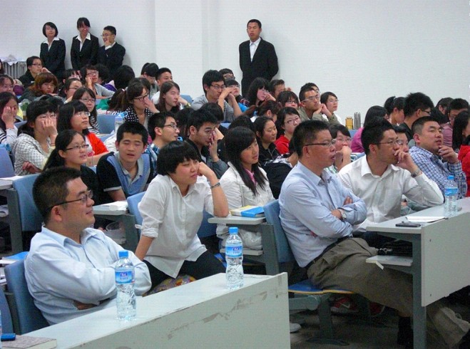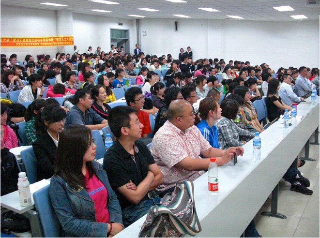 马大勇教授亲切和蔼的教诲赢得了同学们一阵阵热烈的掌声,他风趣幽默的语言更是博得了全场一次次欢快的笑声。讲座在轻松而热烈的氛围下结束。