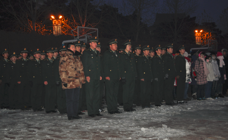 为铭记历史,传承责任,12月9日6点30分,白求恩医学院在新民校区体育场举行了纪念一二·九运动76周年升旗仪式。沈阳军区驻吉林大学后备军官选拔培训办公室参谋张勇、白求恩医学院团委书记夏燕来、新民校区全体国防生及白求恩医学院部分学生参加了此次升旗仪式。仪式由吉林大学国防生模拟三连连长张建鹏主持。